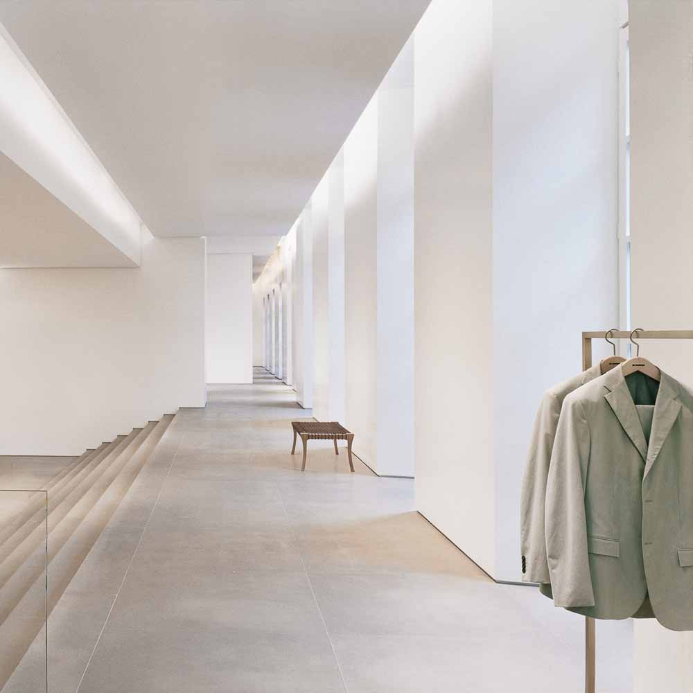 Schnell wird klar: Sander hält an ihren liebsten Farben schwarz, grau, weiß, beige und dunkelblau sowie an der Material- und Schnittwahl fest. Damit beweist sie, dass sie immer noch großen Wert auf die Qualität der Materialien und die ihrer Arbeit legt. Die Designerin bestand nämlich darauf alle gezeigten Originalstücke von Mänteln und Kleidern über Schuhe bis hin zu Taschen für die Ausstellung neu anfertigen zu lassen.