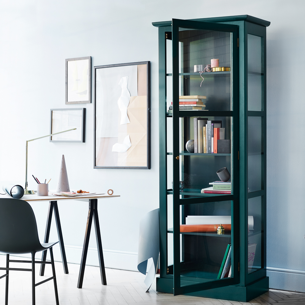 Vor kurzem hat das kleine dänische Team nun zwei neue Modelle nachgelegt. Dabei wurde lediglich der obere Abschluss leicht verändert und die Rückwand nicht weiß, sondern in der selben Farbe wie der Rest der Vitrine lackiert. Zwei augenscheinlich winzige Details, die dem Schrank aber dennoch zu einem noch klareren Erscheinungsbild verhelfen und diese Ausführung moderner und puristischer wirken lassen.