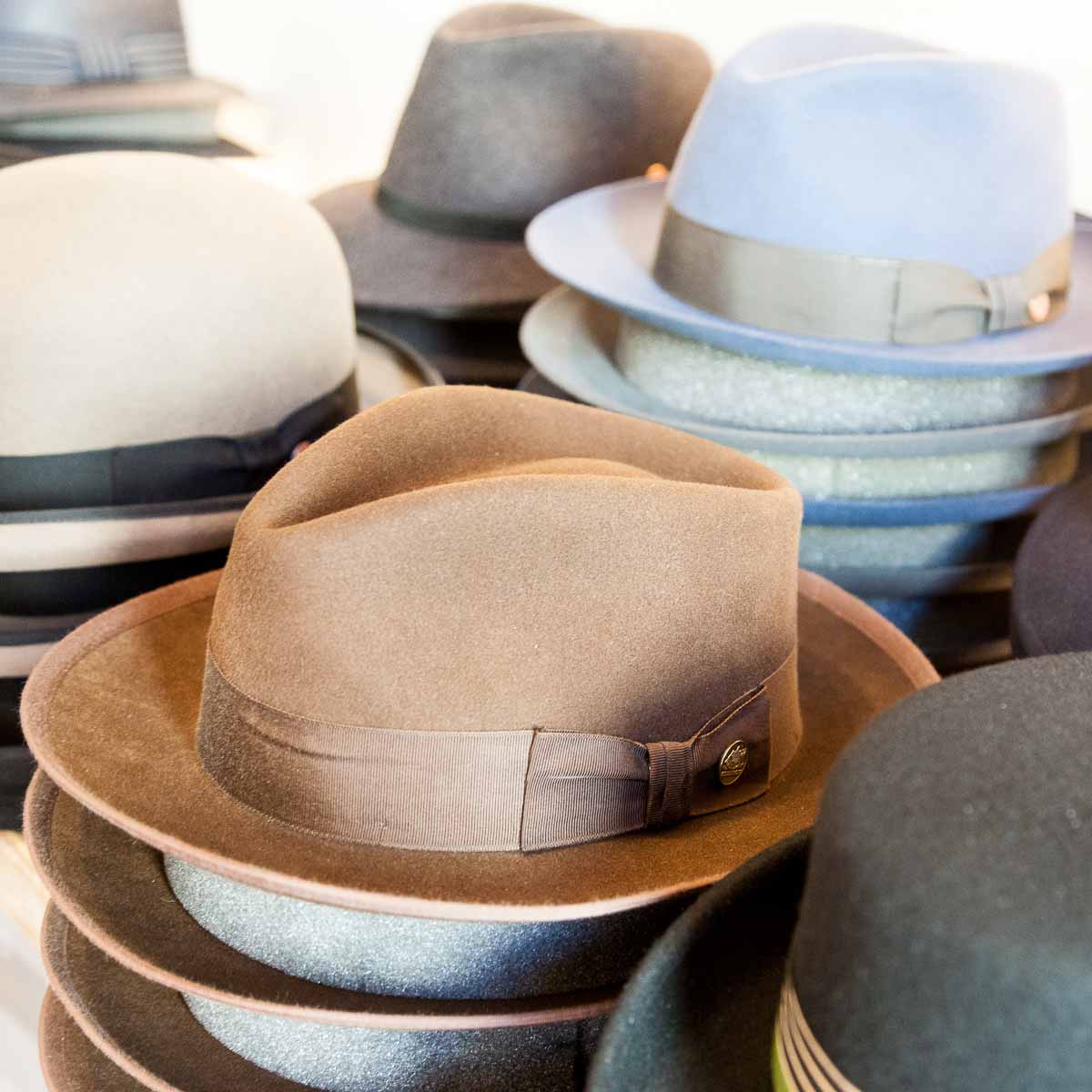 Wer unter Allgäuer Traditionsmarken wie der über 200 Jahre alten Hutmanufaktur Mayser oder der Manufaktur Faustmann, internationalen Labels wie Vintimilla Panama, der in den USA gegründeten Marke Stetson oder Brixton aus England nicht fündig wird, ist tatsächlich selber schuld. Cicero hätte hier seinen heißgeliebten Trilby bekommen und Liebhaber von Exklusivem freuen sich über echte Hasenhaar-Filzhüte, der leichteren Variante des ebenso wasserfesten und rollbaren klassischen Wollfilzhutes.