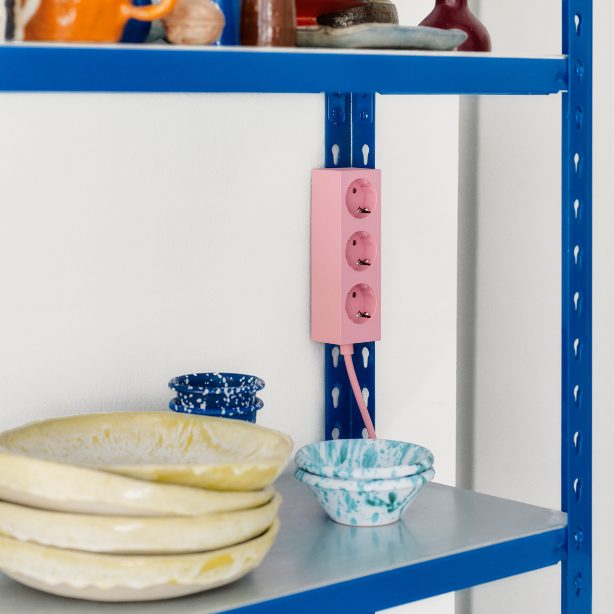 Das dänische Label Pedestal sorgt seit ein paar Jahren für mehr Ordnung in den eigenen vier Wänden. Das noch junge Label produziert minimalistische TV‑Ständer, Kabelhalter und viele weitere Accessoires, um den großen Kabelsalat, ästhetisch in den Griff zu bekommen. Uns hat es ganz besonders die Farbe „Bubble Gum“ angetan. Dank der klaren Formen wirkt der feminine Farbton in keiner Weise kindlich und macht selbst etwas so Profanes wie eine Steckerleiste zu einem frischen Akzent im Interieur.