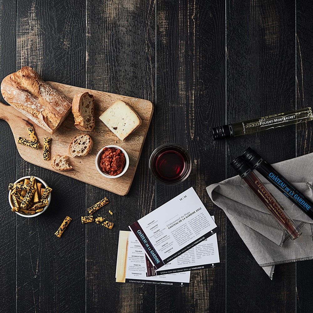 Die Idee ist so neu wie einfach: Vinecase ist ein Klub. Mitglieder dieses Kreises aus Weinkennern und -interessierten erhalten einmal im Monat eine Probierbox mit drei Premiumweinen nach Hause geliefert. Puristisch und edel präsentieren sich die Weine in 100ml-Glastubes, weich gebettet in einer schwarzen Schachtel und erzählen jeder für sich ihre ganz eigene Geschichte.