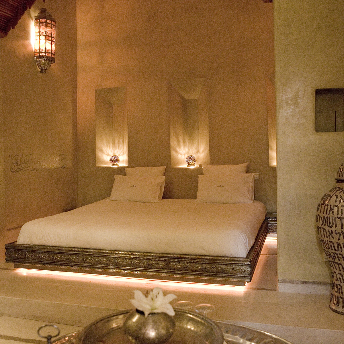 Märchenhaft und mit dem Gemäuer eng verwoben ist auch die Geschichte von dem Mädchen Yela, die hier gelebt haben soll. Und so fand die Erzählung nicht nur im Namen des Hotels ihren Platz – Anayela bedeutet "Ich bin Yela"– sondern wurde zudem von einem bekannten Kalligrafen in Silber geschmiedet an die Zimmertüren des Riads gebracht. Zwei Räume finden sich im Erdgeschoss und öffnen zum Patio, auf der ersten Etage finden sich ein weiteres Schlafzimmer und zwei Suiten.
