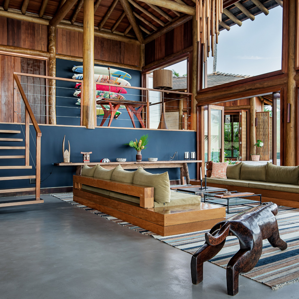 Das Resort selber ist ein Ort der Ruhe und Entspannung. Die Architektur und das Design mit sehr viel Holz und anderen Naturmaterialien, maßgefertigten Möbeln und zeitgeistiger Kunst wirken tiefenentspannend. Die vielen Loungebereiche laden zum Chillen ein. Mehr Platz als Gäste und das ist gewollt. Es gibt nur 17 wie Boule-Kugeln auf dem Gelände liegende und aus der Vogelperspektive wie Baumhäuser wirkende Suiten – Urlaubsglück für alle, die das Barracuda ein Zuhause auf Zeit nennen können.