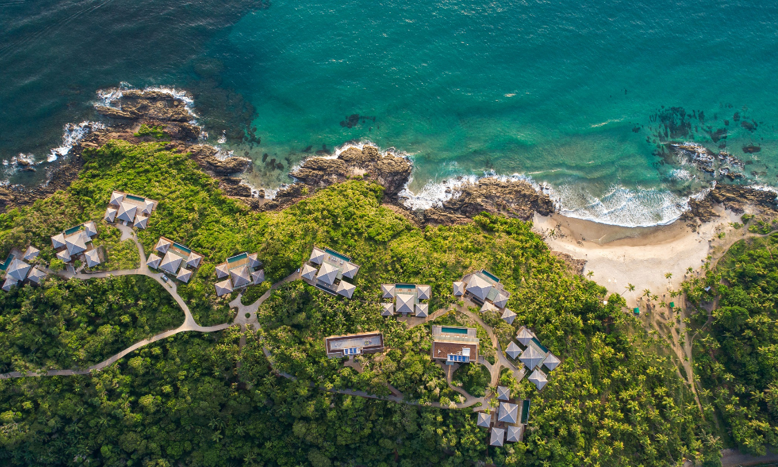 Passen könnte es, dieses Luxus- ist auch ein Lifestyle-Hotel, auf Nachhaltigkeit bedacht, zum Start in den Tag auch vegetarisches und veganes Frühstück anbietend. Das Hideaway liegt oberhalb des Strandes, auf einem Felsvorsprung, inmitten einer üppigen Vegetation. Vom Balkon aus, von den Tagesbetten aus Baumstämmen, vom Pool, von den hölzernen Lounge-Decks, von überall blickt man auf den Ozean, kann beobachten, wie sanft oder aufbrausend er ist.