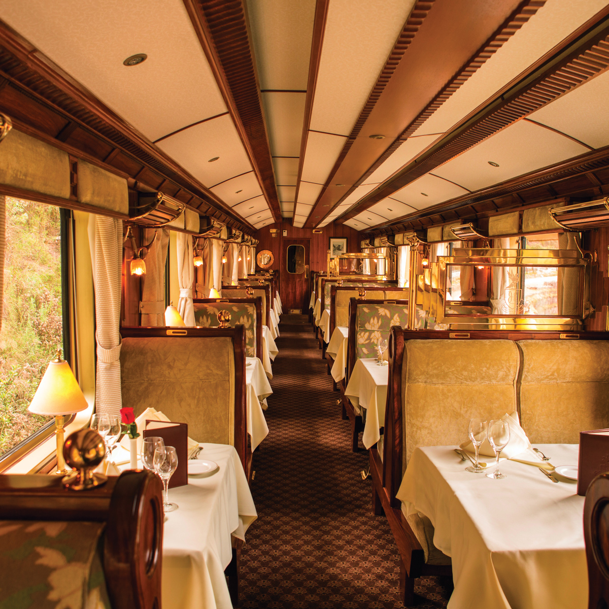 Benannt nach dem Entdecker der Inka-Stadt erstrahlt der Belmond Hiram Bingham in Classic Blue mit goldenen Details und hebt sich mit den geschmackvollen Farben vom satten Grün der peruanischen Landschaft ab. In ihrem Inneren offenbaren die Waggons ihre Einrichtung im Pullman-Stil, in Verbindung mit dem Glamour einer vergangenen Zeit: viel poliertes Holz, feine Stoffen und klassische Amaturen. Die Eleganz und der Charme der Alten Schule kommen im Belmond Hiram Bingham an erster Stelle. Lehnen Sie sich zurück und lassen Sie sich vom Belmond-Serviceteam nach allen Regeln der Kunst verwöhnen.