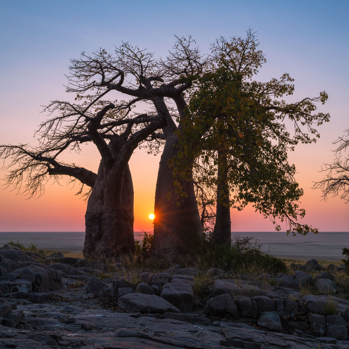 Weitere Etappen: eine Wanderung mit den San-Buschmännern, die bis heute nach alten Traditionen leben und ihr Wissen über Pflanzen, Tiere und das Überleben in der Wüste mit großer Herzlichkeit teilen. Oder ein Besuch auf Kubu Island, einer granitenen Insel mitten im Nirgendwo, mit archaischen Baobabs und den Spuren jahrhundertealter Rituale.