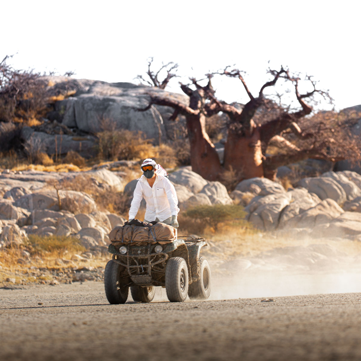 Die Tage sind gefüllt mit eindrucksvollen Aktivitäten – von Begegnungen mit den charismatischen Erdmännchen bis zu einem Ausflug mit dem Quadbike zur sagenumwobenen Lost Island of Baobabs, wo die uralten Affenbrotbäume wie stumme Wächter aus dem Boden ragen. Wer möchte, verbringt die Nacht direkt auf der Salzpfanne – auf einer Matratze unter freiem Himmel, mit Wärmflasche und heißem Tee, umgeben von nichts als sanftem Wind und Sternen. Ein beinahe spirituelles Erlebnis.