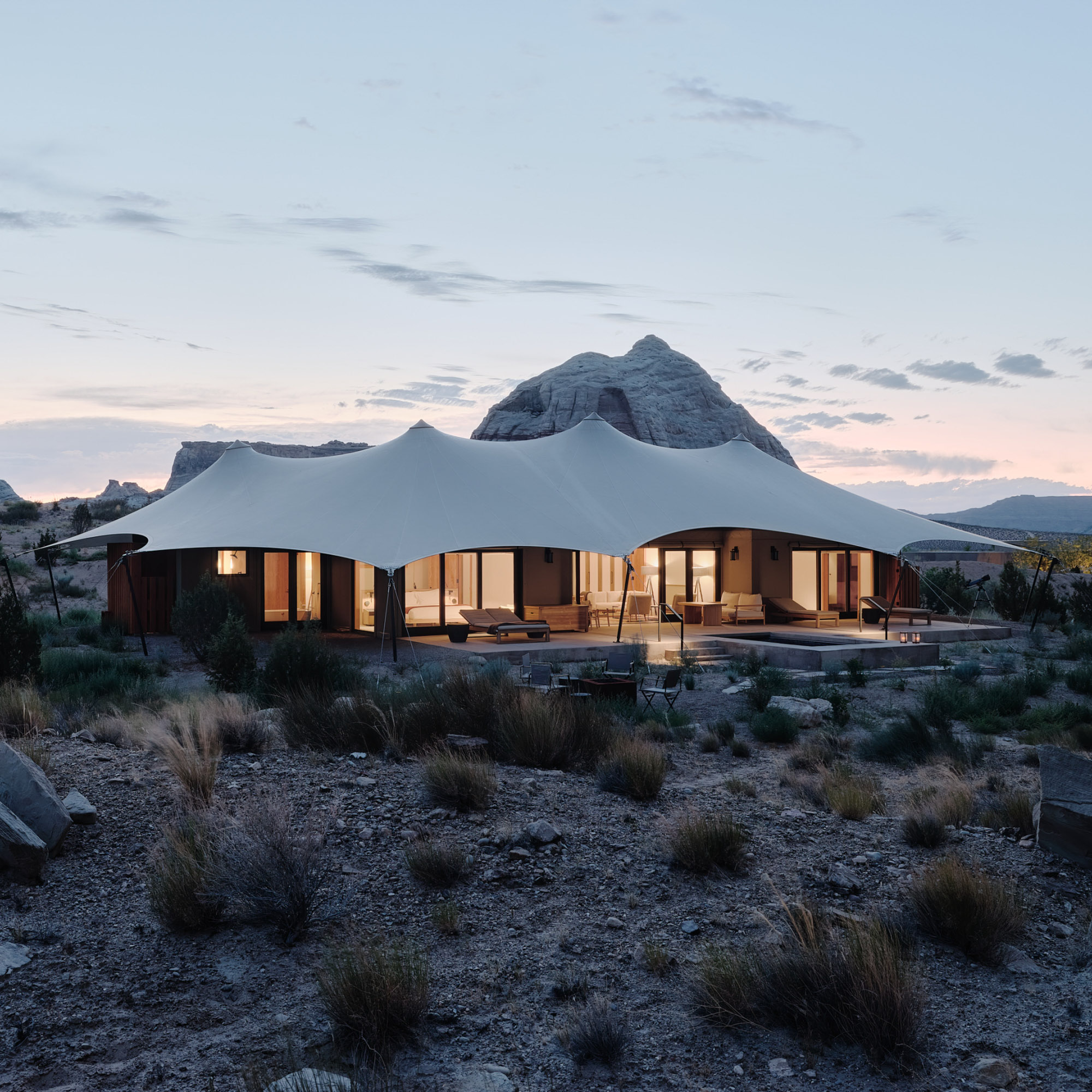 Wäre ich die Reinkarnation von Karl May und könnte zudem den Drehort für die Verfilmung der Wildwest-Abenteuer von Winnetou und Old Shatterhand bestimmen, dann würden die Blutsbrüder durch Utah reiten – durch die unberührte Natur einer archaischen Canyon-Landschaft mit kargen Bergen und rotbrauner Wüste. Nächtigen würden sie wie gewohnt abseits der Zivilisation, nur in einem zeitgeistigen Domizil, dem „Glamping“-Resort Camp Sarika in Amangiri.
