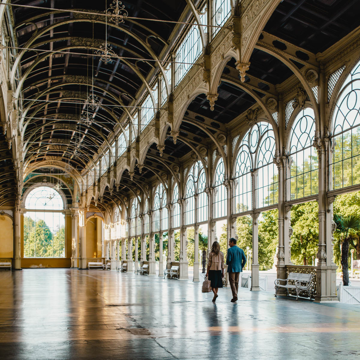 Eine Stadt im Park oder ein Park in der Stadt? Marienbad wirft Fragen auf. Die sich aber ganz leicht beantworten lassen: Sowohl als auch. Der Kurort ist mit seinen Prachtbauten, Pavillons und Kolonnaden ein architektonisches Juwel. Mit seinen Parkanlagen, in denen man monatelang spazieren könnte, ein Plätzchen Erde, das für Erholungssuchende wie gemacht ist. Kein Wunder, dass viele Dichter, Denker und Könige dort gekurt haben. Franz Kafka brauchte für die Beschreibung von Marienbad nur zwei Worte: „Unbeschreiblich schön.“