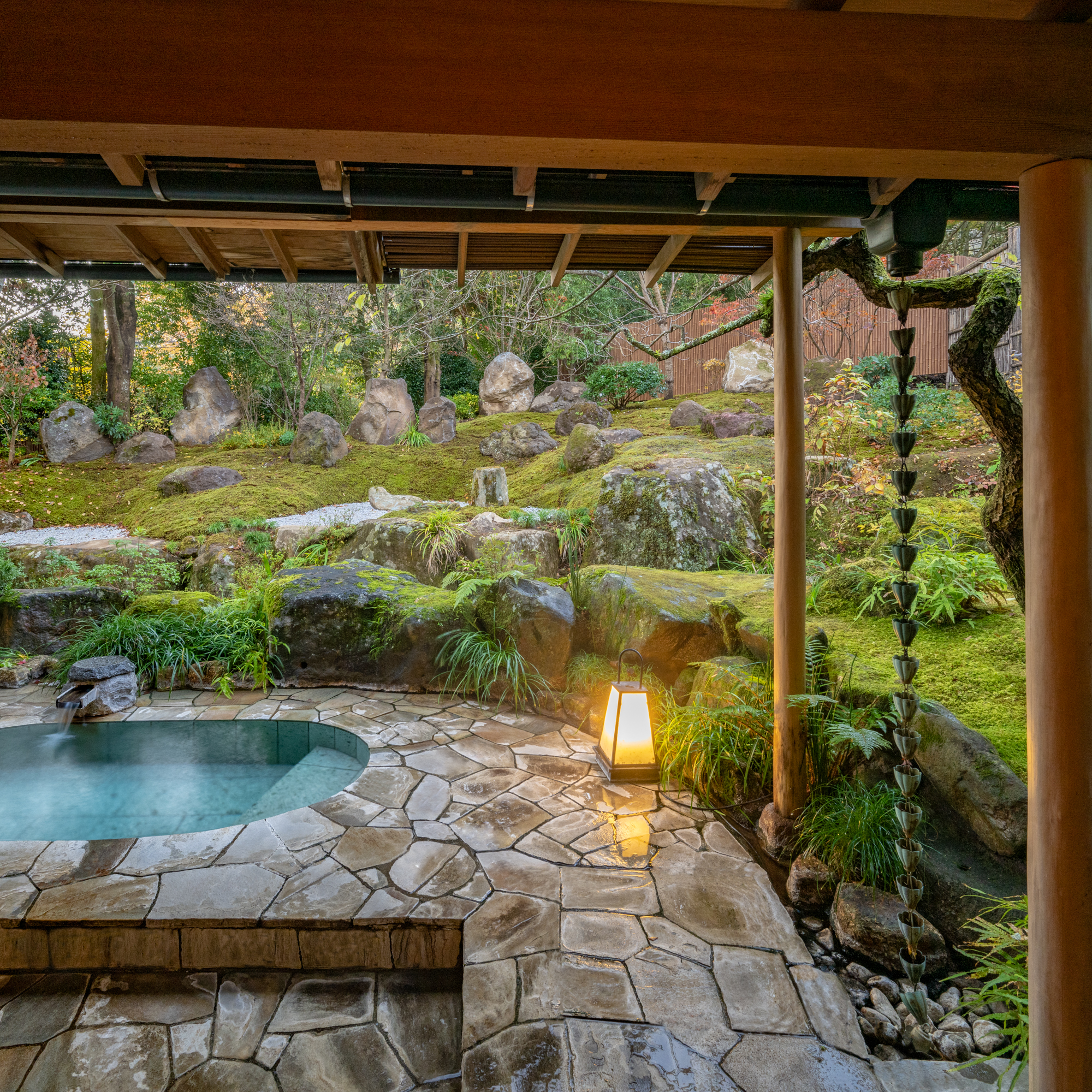 Im Gôra Kadan geht es nicht um spektakulären Luxus im klassischen Sinne, es geht vielmehr um Reduktion und achtsames Erleben. Tatami-Matten unter den Füßen, der Duft von Blumenweihrauch in der Luft, das leise Geräusch einer sich schließenden Shoji-Schiebetür aus Reispapier. Jedes Detail ist durchdacht, jedes Material mit Bedacht gewählt. Die Zimmer und Suiten sind minimalistisch gestaltet, bieten dabei aber allen modernen Komfort inklusive privater Onsen-Bäder unter freiem Himmel.