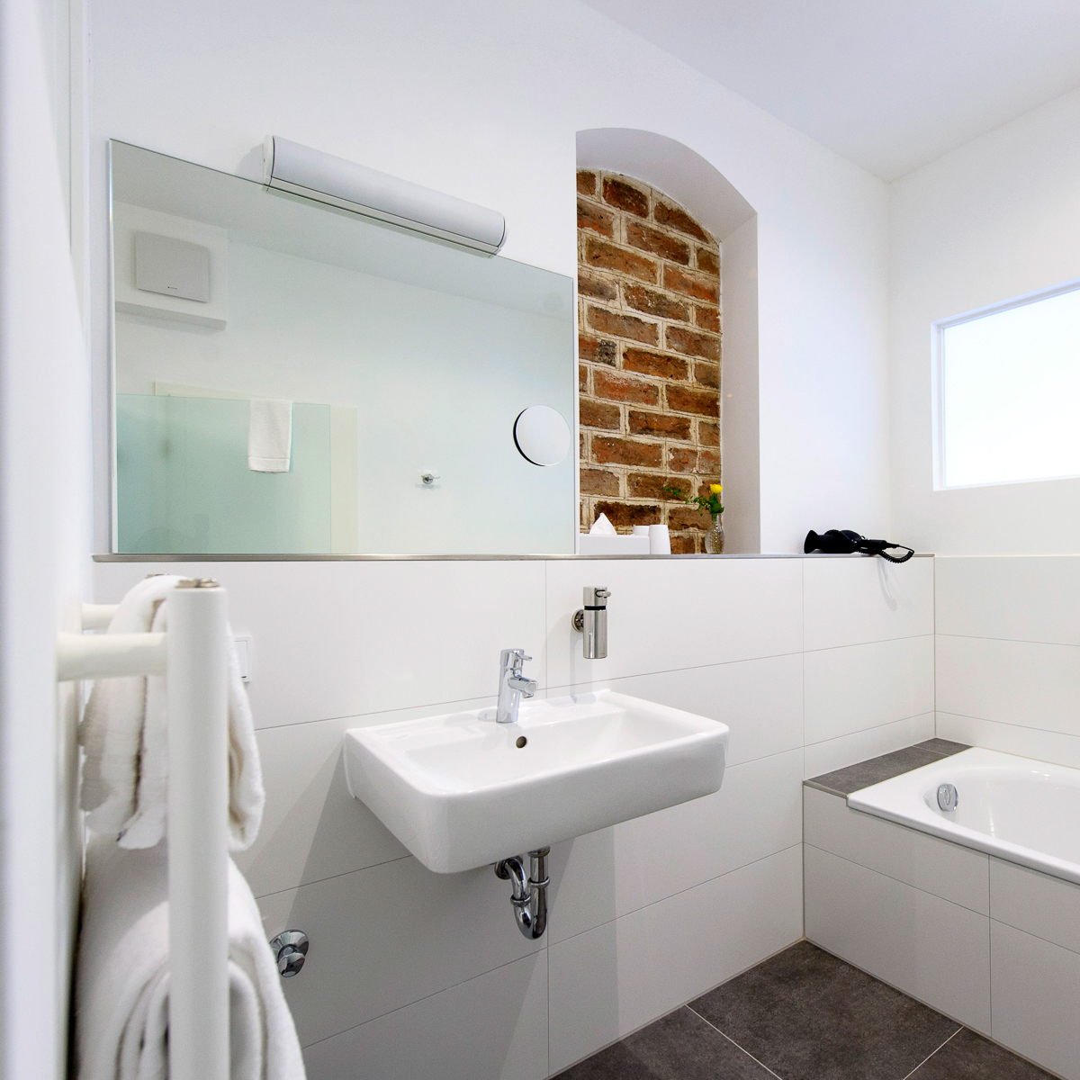 Als Unterkunft hatten wir uns das Hotel Einzigartig herausgesucht, das uns mit seiner Kombination aus alter Bausubstanz und einem frischen, modernen Design bereits über die Website sehr gefallen hatte. 1579 erbaut und 1874 aufgestockt, war es vor sieben Jahren entkernt und behutsam restauriert worden. Wo immer möglich, wurden die Spuren der Vergangenheit offengelegt und dadurch charmante Details geschaffen.