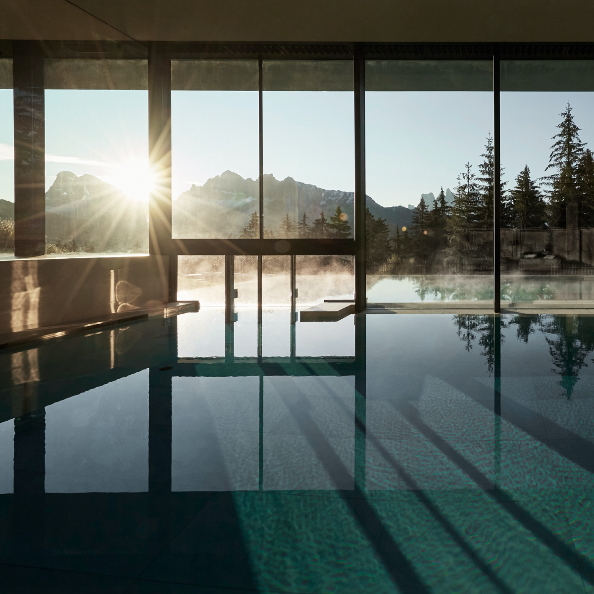 Der Forestis Spa erstreckt sich auf einer Fläche von 2.000 Quadratmetern unterhalb der drei Türme und verteilt sich auf zwei Etagen mit Blick auf die Berge. „Die Dolomiten, die Wälder und die Jahrtausende alte Kulturgeschichte sind wesentliche Bestandteile der Konzeption des Forestis-Spas“, erklärt Spa-Leiterin Alessandra Tiengo.