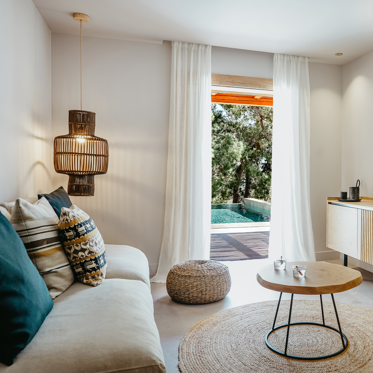 Wenn auch das Meer direkt vor der Tür liegt, sind es die Pool-Villen sowie die exklusive Präsidenten-Suite mit eigenem Pool, die gerade den Sommerurlaub mit Traumtemperaturen um 30 Grad im Minos Beach Art besonders machen.