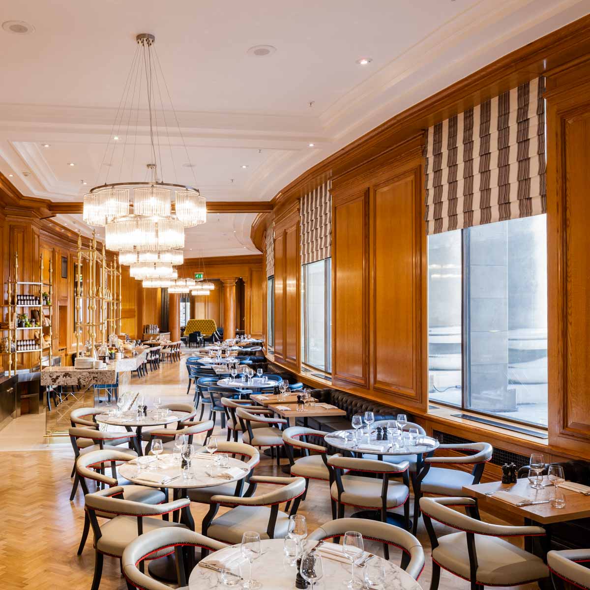 Die Gänge erscheinen endlos und hinter den zahllosen Türen verbergen sich ehemalige Büros, die heute als gediegene Konferenzräume fungieren, eine weitläufige Bibliothek mit Blick über die Themse, in der tagsüber die elegante Tea Time und am Abend das Dinner serviert werden oder die Leader’s Bar mit über einhundert Gin Sorten. Einen fantastischen Ausblick hat man auch aus dem Gillray’s Steakhouse & Bar, in dem am Morgen zunächst das Frühstück und später eine schmackhafte britische Küche mit Produkten aus der Region serviert wird.