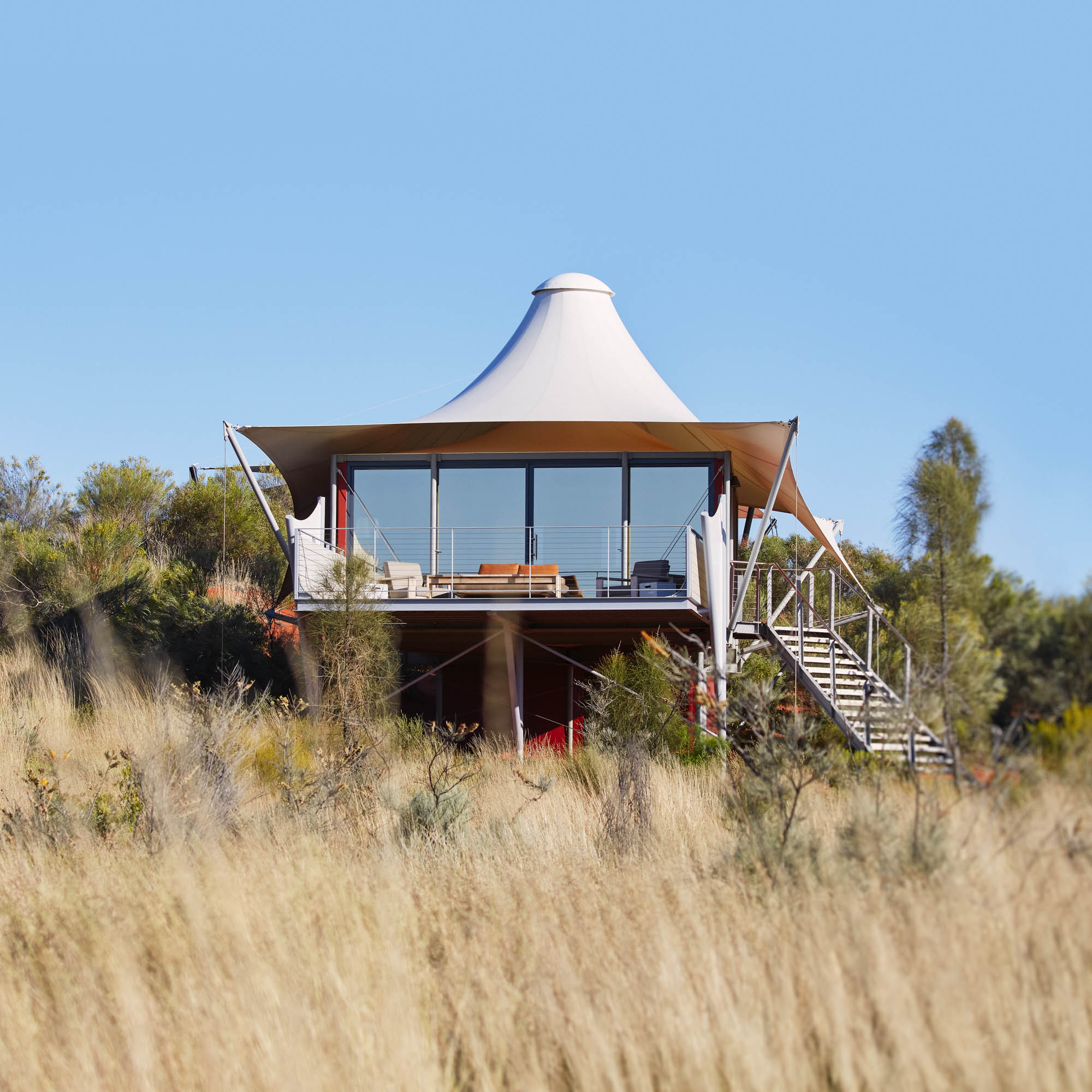 Longitude 131, das ist die genaue Lage von Australiens berühmtestem Wahrzeichen, dem Ayers Rock. Mitten im Zentrum des fünften Kontinents, mitten im Outback ragen 16 weiße Zelte aus dem roten Sand empor, die Luxusunterkünfte des Longitudes 131. Mit allen Annehmlichkeiten, auf die man nicht verzichten mag. Und dem größten Luxus überhaupt: der Natur, egal, wohin man blickt.