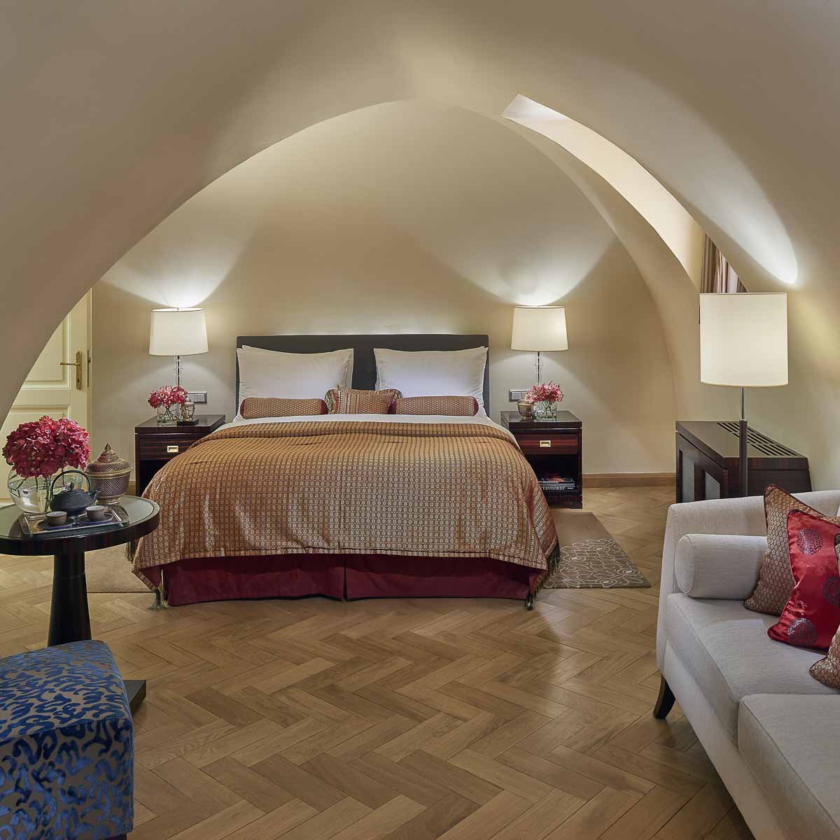 Vom Prager Hauptbahnhof ist man in 15 Minuten am Mandarin Oriental Prague und zugleich mitten in der berühmten Malá Strana, der sogenannten Prager Kleinseite. Hier, inmitten von unfassbar schönem, historischem Altbaubestand, hat die Hotelgruppe in einem ehemaligen Dominikanerkloster, dessen Wurzeln auf das 14. Jahrhundert zurückgehen, 2006 seine edle Herberge eröffnet.
