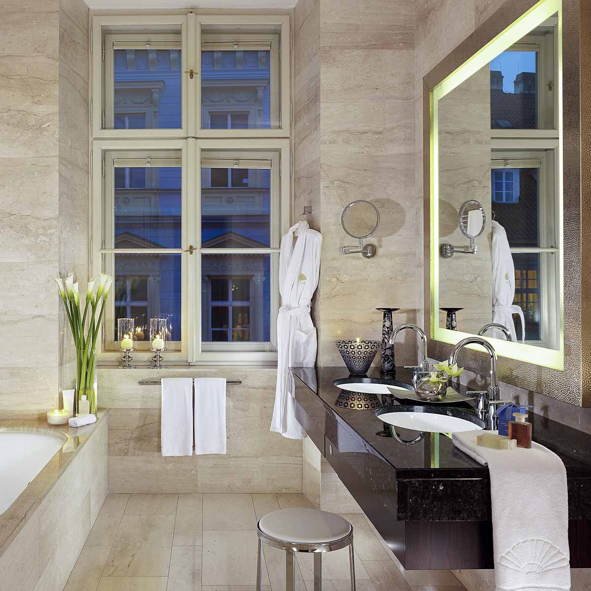 Das Mandarin Oriental Prague selbst bietet entsprechend seiner fünf Sterne jeglichen Komfort. Im ganzen Haus finden sich original erhaltene Details aus der Renaissance und dem Barock, die gepaart mit modernen Elementen, ein großes Ganzes ergeben. Während der Renovierungsarbeiten war man immer wieder auf altertümliche Fundstücke und Ausgrabungen gestoßen, die von Archäologen gesichert werden mussten.