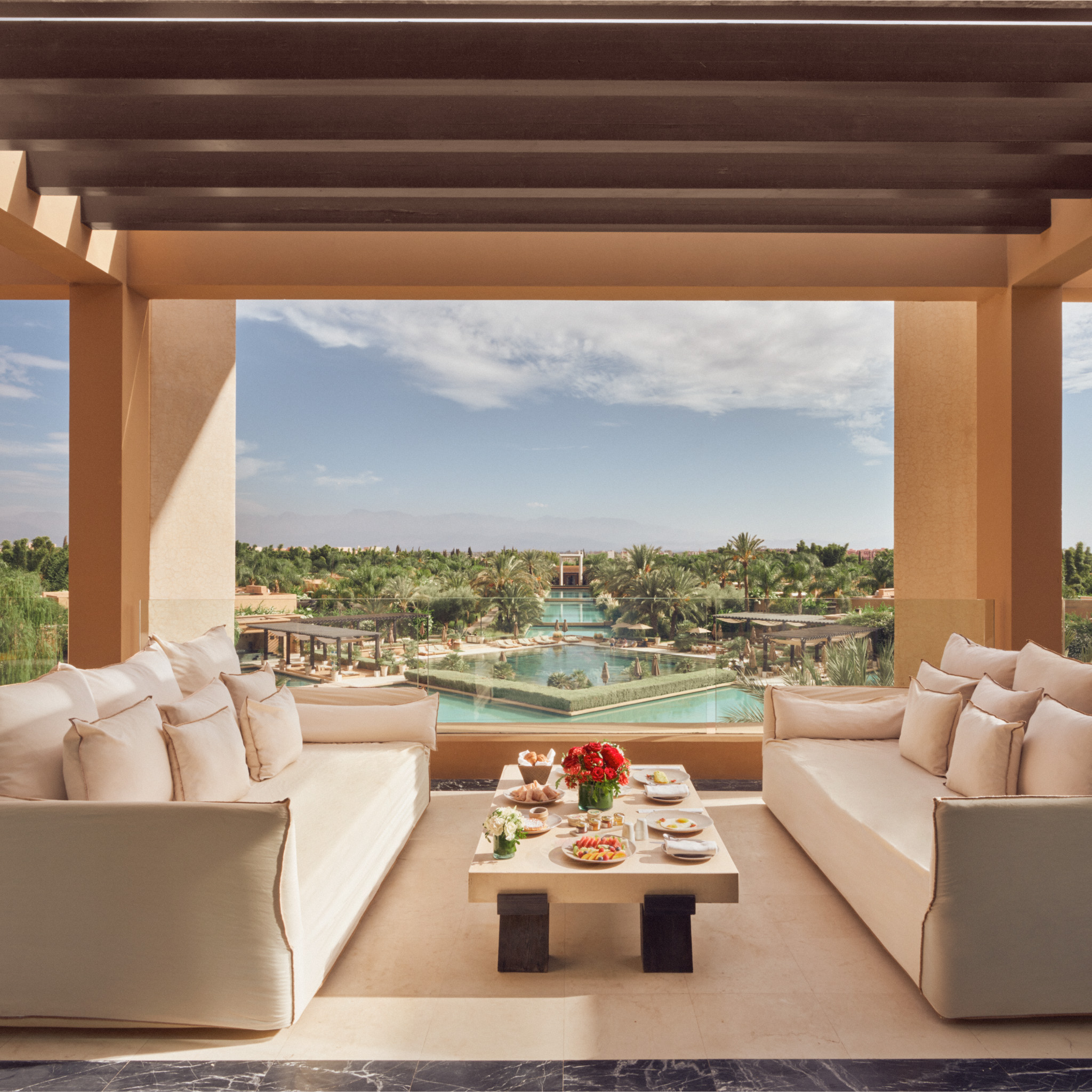 Da sind wir also, in diesem Suiten-Hideaway im Luxussegment. In einer von Olivenhainen eingebetteten Ruheoase, prächtig, luxuriös, das Zentrum Marrakeschs mit .... direkt vor der Tür, das majestätische Atlasgebirge im Blick. Das 5-Sterne-Refugium spiegelt sich in der Suite wieder.