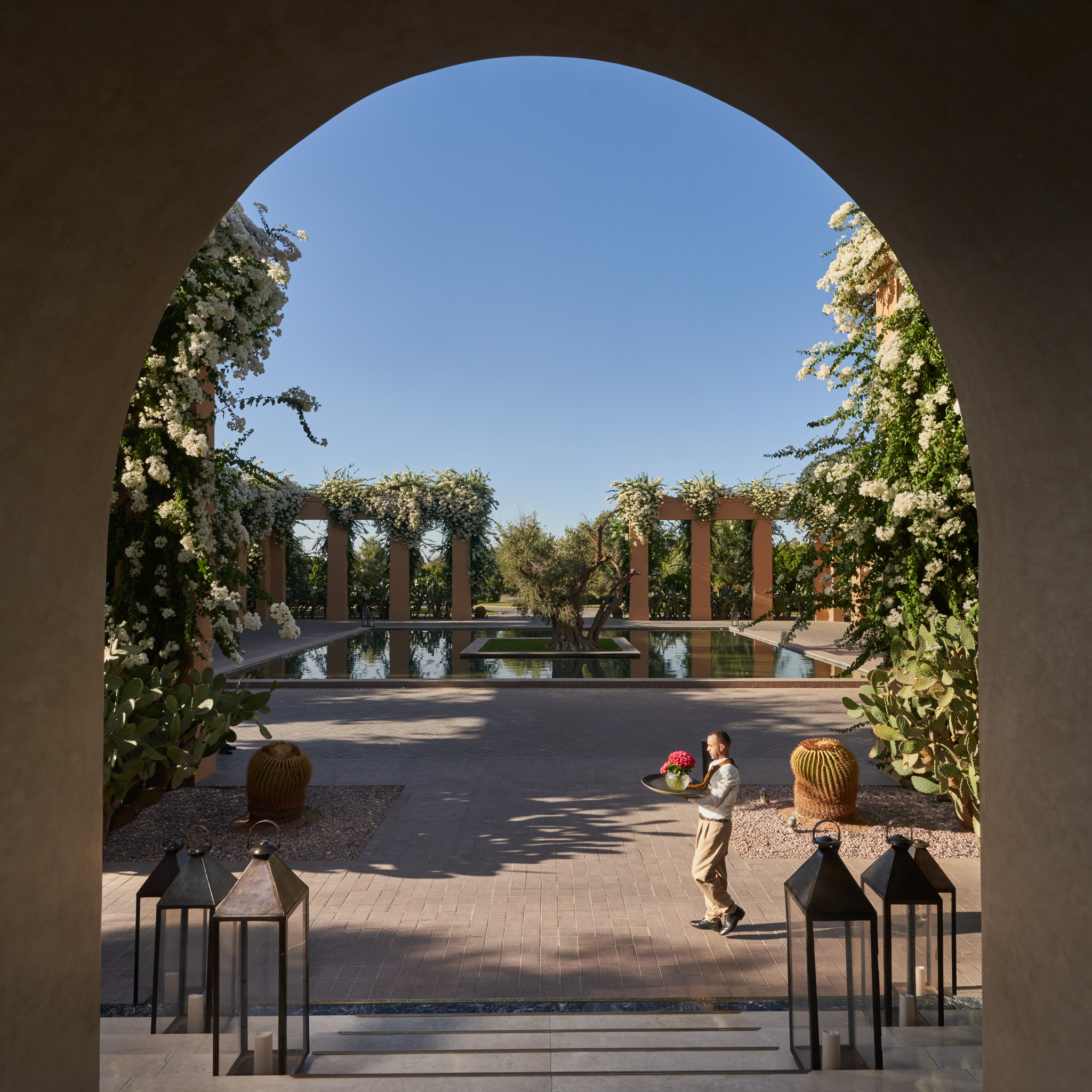 Und die Natur? Da wäre ein Garten voller lateinamerikanischer Kakteen, mit den Majorelle Gardens einer der berühmtesten Gärten der Welt – wir könnten so weitermachen, ganz zu schweigen von unvergesslichen Erkundungen des Atlas-Gebirges. Das sind jedoch die persönlichen Geschichten aus Tausendundeine Nacht, die Ella Fogg ihre Reisenden selber schreiben lässt, aus Marokko, aus Marrakesch, aus dem Mandarin Oriental, aus der Mandarin- und den anderen Villen dieses Luxus-Riads.