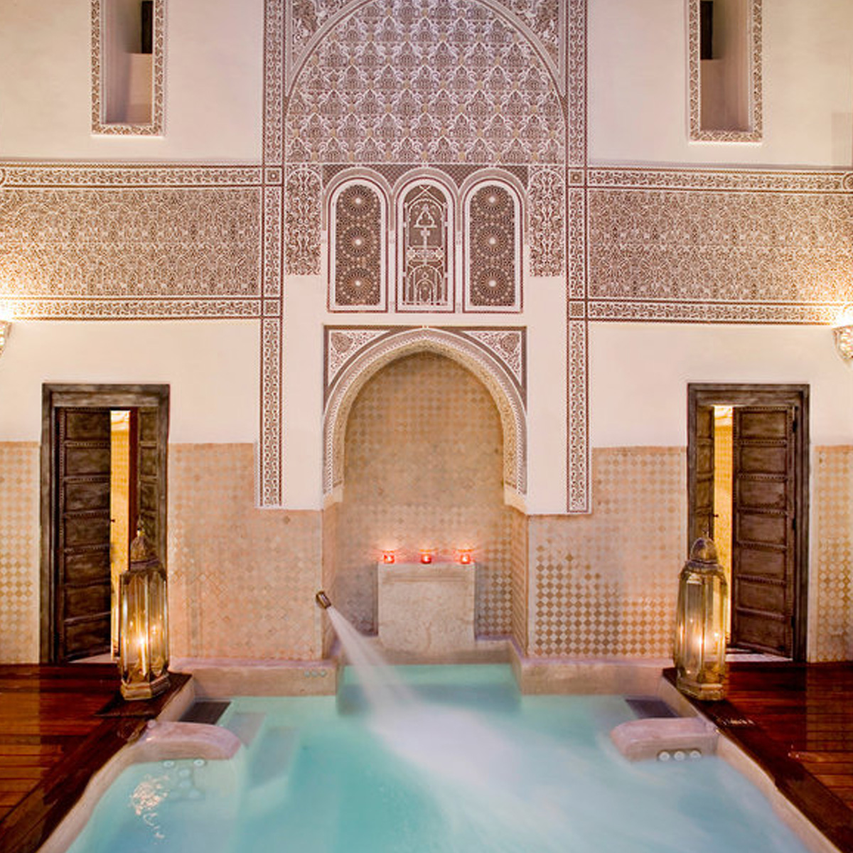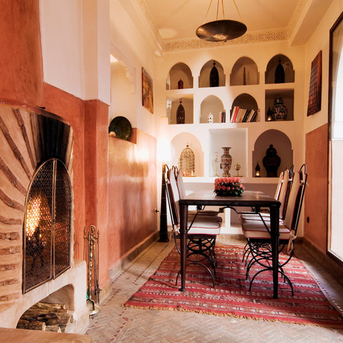 Nach außen wirken sie oft unscheinbar, doch von innen offenbart sich ihre ganze Pracht. Ihr ursprünglicher Charme wurde erhalten, ohne dabei auf jedweden Komfort zu verzichten. Sie werden staunen über die reich verzierten Wände, Decken und Fliesen der kleinen Höfe, die sich hinter den Türen verbergen. Kleine Pools laden dazu ein, sich vom Staub der Stadt zu befreien und von der marokkanischen Sonne abzukühlen.