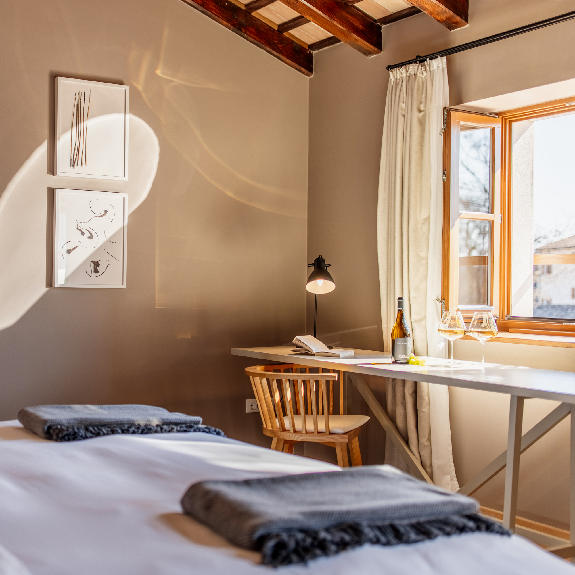 Alles, was hier auf den Tisch kommt, ist handwerklich durchdacht, aber nie gekünstelt. Auch das Frühstück am Morgen wird so zu einem entspannten Start in den Tag. Man sitzt auf der Terrasse, die Sonne geht langsam über den Feldern auf, der Duft von Kaffee und Lavendel liegt in der Luft. Wer mag, startet prickelnd in den Tag und bestellt sich ein Glas Schaumwein. Das wundert hier niemanden.