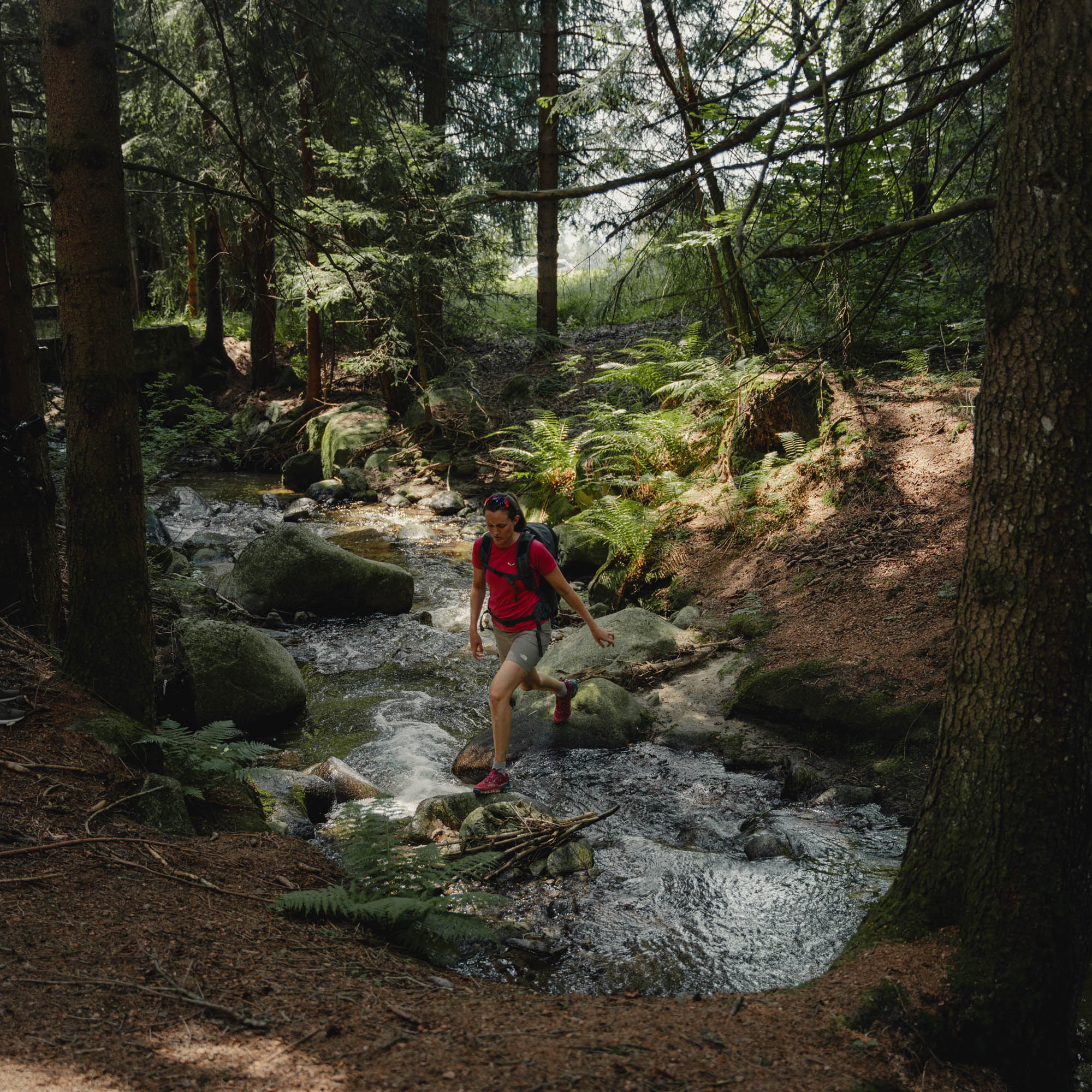 Zurück im Wellness-, Natur- und Designhotel geht die aktive und passive Entspannung weiter. In der Sauna und im Dampfbad, im Infinitypool mit Panoramablick und, was wir hier kennenlernen dürfen, bei einem Kneippgang im Wildbach.