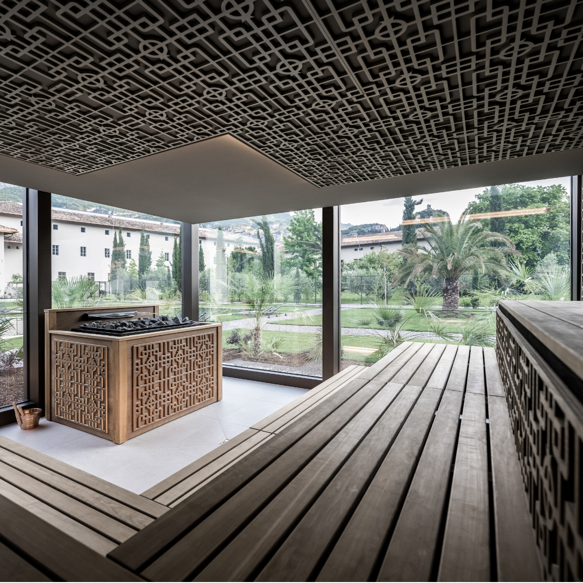 Im Klostergarten des Arx Vivendi befindet sich das luxuriöse Spa, welches sich an die ländliche Bebauung der Region anlehnt. Die gläsernen Kuben sind von den Zitronengewächshäusern inspiriert, die für die Landschaft am Gardasee charakteristisch sind. Im Ruheraum gibt es an Seilen hängende, freischwebende Liegebetten, von denen man den Ausblick in den Garten, auf die umliegenden Berge und das Hauptgebäude genießt. Umgeben von gefrästen Holzpaneelen an den Wänden, warmen Farben und weichen Stoffen vergisst man hier gerne die Zeit. Der Wellnessbereich umfasst Entspannungsbereiche, einen Behandlungsbereich, und einen Pool. Stilvoll Schwitzen lässt es sich in einer Bio-Sauna, einer finnischen Sauna und dem Hamam.