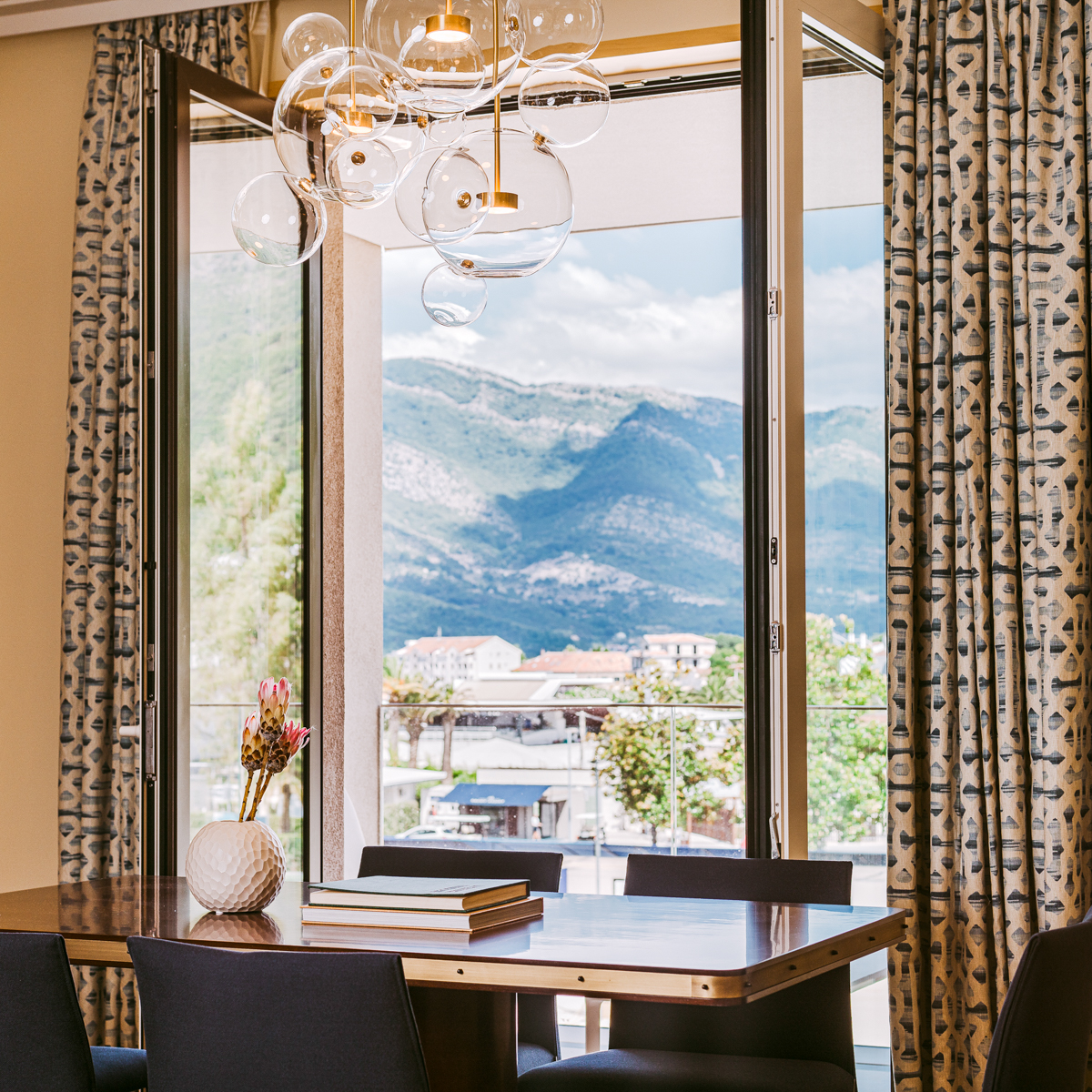 Zugegeben, die Anreise über die Hauptstadt Podgorica ist etwas umständlich, denn deren winziger Flughafen ist eine 1,5-stündige Autofahrt vom Regent entfernt. Während dieser kann man sich jedoch an der atemberaubenden Landschaft erfreuen, zunächst im bergigen Inland, später jedoch in den Serpentinen der Küste, die ein Garant für großartige Aussicht sind. Wem das zu lange dauert, hat Glück: Seit Anfang April gibt es Direktflüge von Berlin nach Tivat, dem Ort zu dem Porto Montenegro gehört.