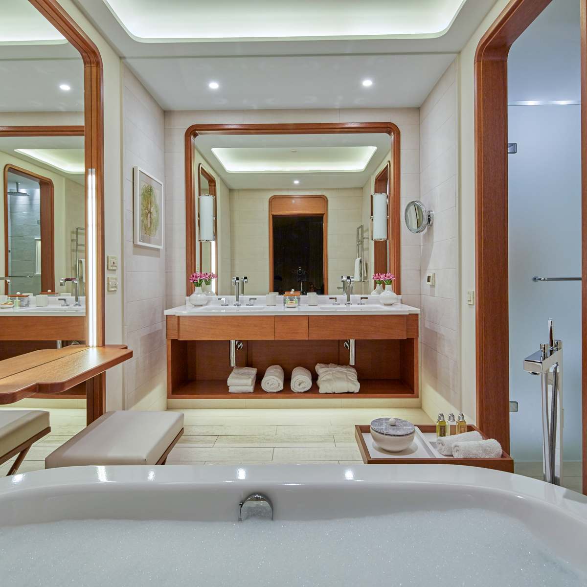 Später lässt sich der Tag ganz entspannt im Hamam, im Whirlpool oder bei einer Massage angenehm ausklingen. Wer anderweitige Entspannung mag, findet diese auch bei einer Shoppingtour durch die umliegenden Boutiquen oder einfach mit einem Drink auf den großzügigen Balkonen mit Blick auf die Bucht.