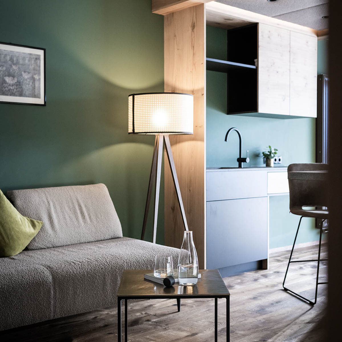 Seit seiner Eröffnung im Jahr 2022 hat sich das Vier-Sterne-Plus-Hideaway als Geheimtipp für all jene etabliert, die sich nach einer Auszeit sehnen, in der eine traumhafte Natur und Komfort keine Gegensätze sind. Die zwölf exklusiven Apartsuiten sind so gestaltet, dass man sich vom ersten Moment an rundherum wohl fühlt. Klare Linien, natürliche Materialien und große Fensterfronten, die den Blick auf die Brenta Dolomiten freigeben, schaffen eine Atmosphäre der Ruhe.