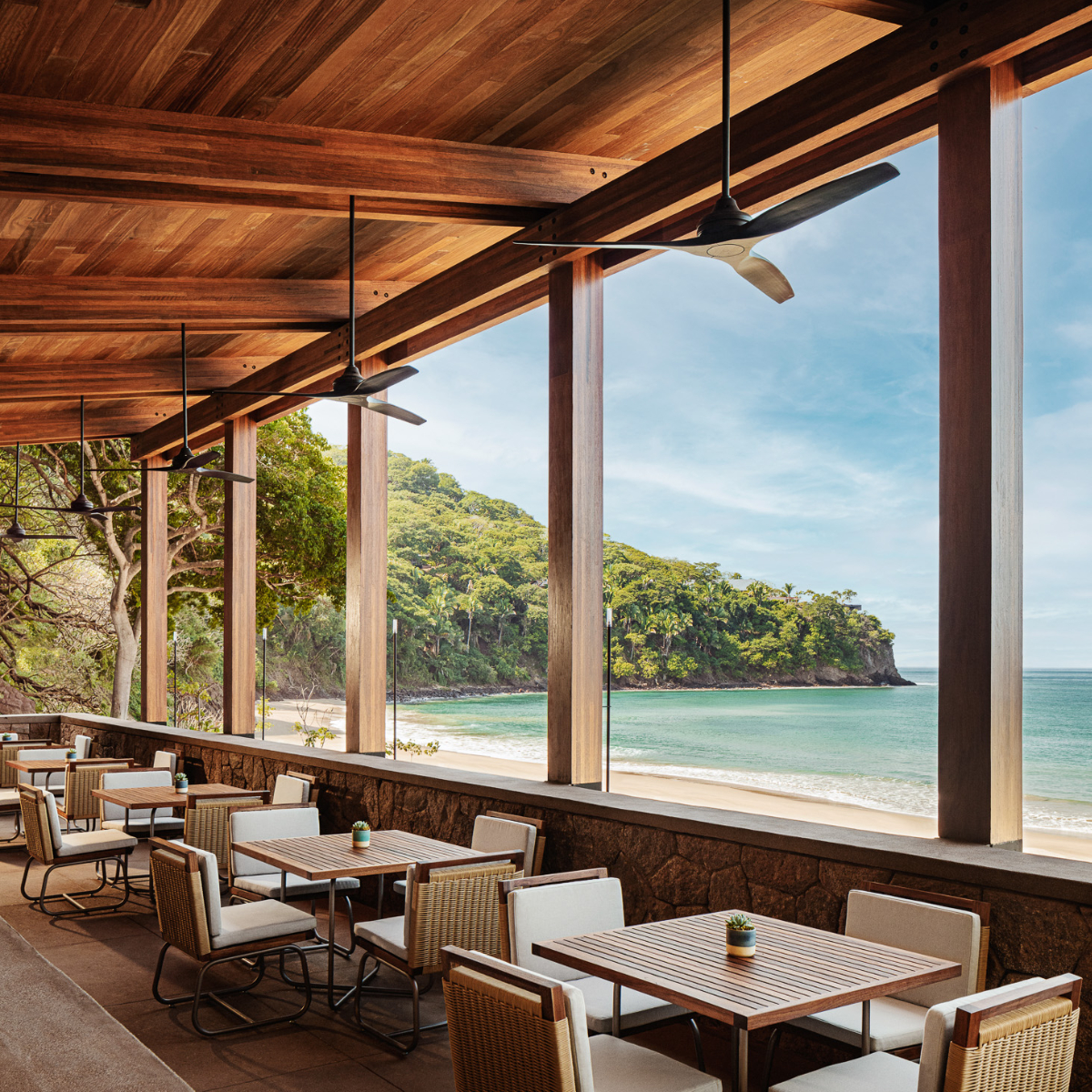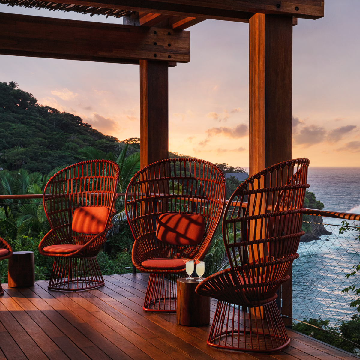 Zum Sonnenuntergang dann der Aperitif in der Treetop-Bar. Über den tropischen Baumwipfeln, 360-Grad-Rundum-Blick, Drinks aus nachhaltigen Zutaten und auch (Natur-)Weine, so stellen sich sonst nur Top-Bars in Metropolen auf. Und wo stehen schon Seeigelpastete und Entenprosciutto auf der Karte? Die Antwort liegt auf der Hand, im One&Only Mandarina, im familiären panamerikanisch-mediterranen Pool-Restaurant Alma bei entspannter Latinomusik unter freiem Himmel.
