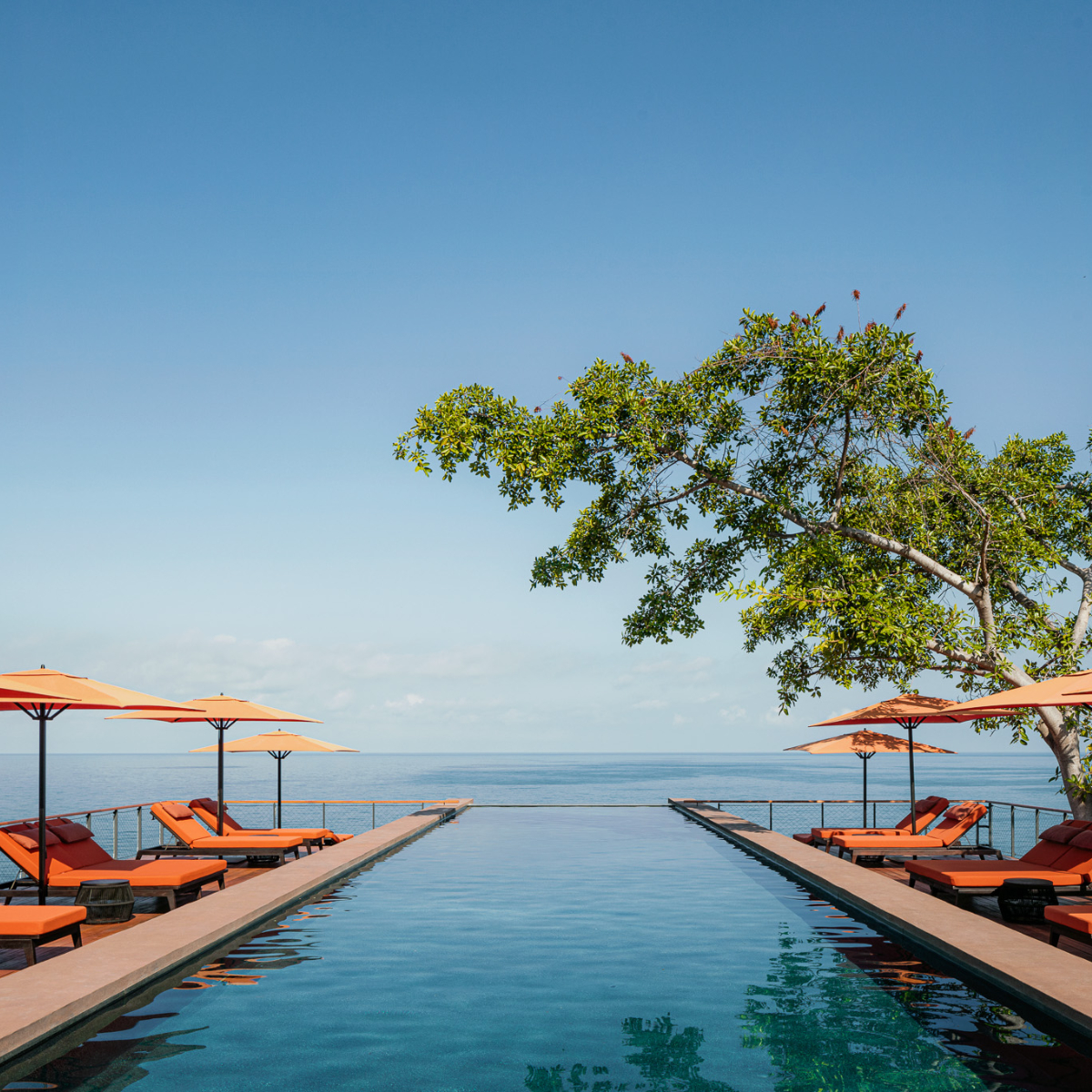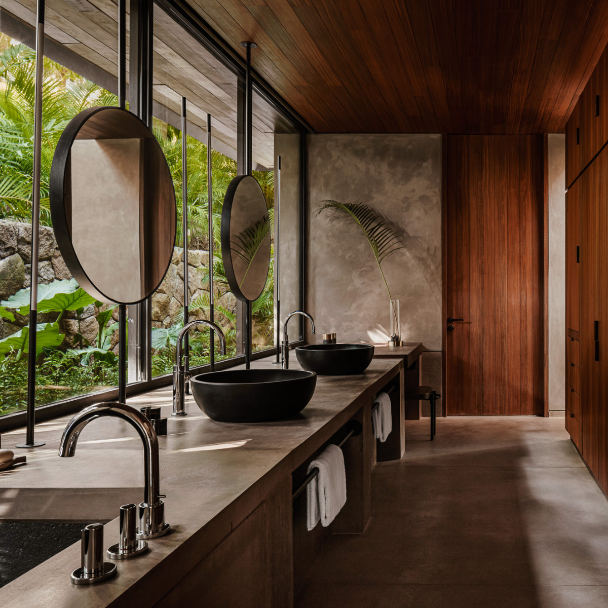 Der Zen-Buddhismus scheint Pate gestanden zu haben, als die Vision des One&Only Mandarina erschaffen wurde. Stein, Holz, auf Horizontalen und Vertikalen setzende Formsprache, Artefakte, harmonische, erdverbundene Farben mit pastellfarbenen Akzenten, vollverglaste Wände, die sich aufschieben lassen, sodass Innen und Außen eine Einheit bilden. Die in Holz- oder Steinterrassen eingelassenen privaten Pools sind meditative Wasserbecken zum Schwimmen, zum Horizontgucken, zum Erleben des Elementes Wasser.