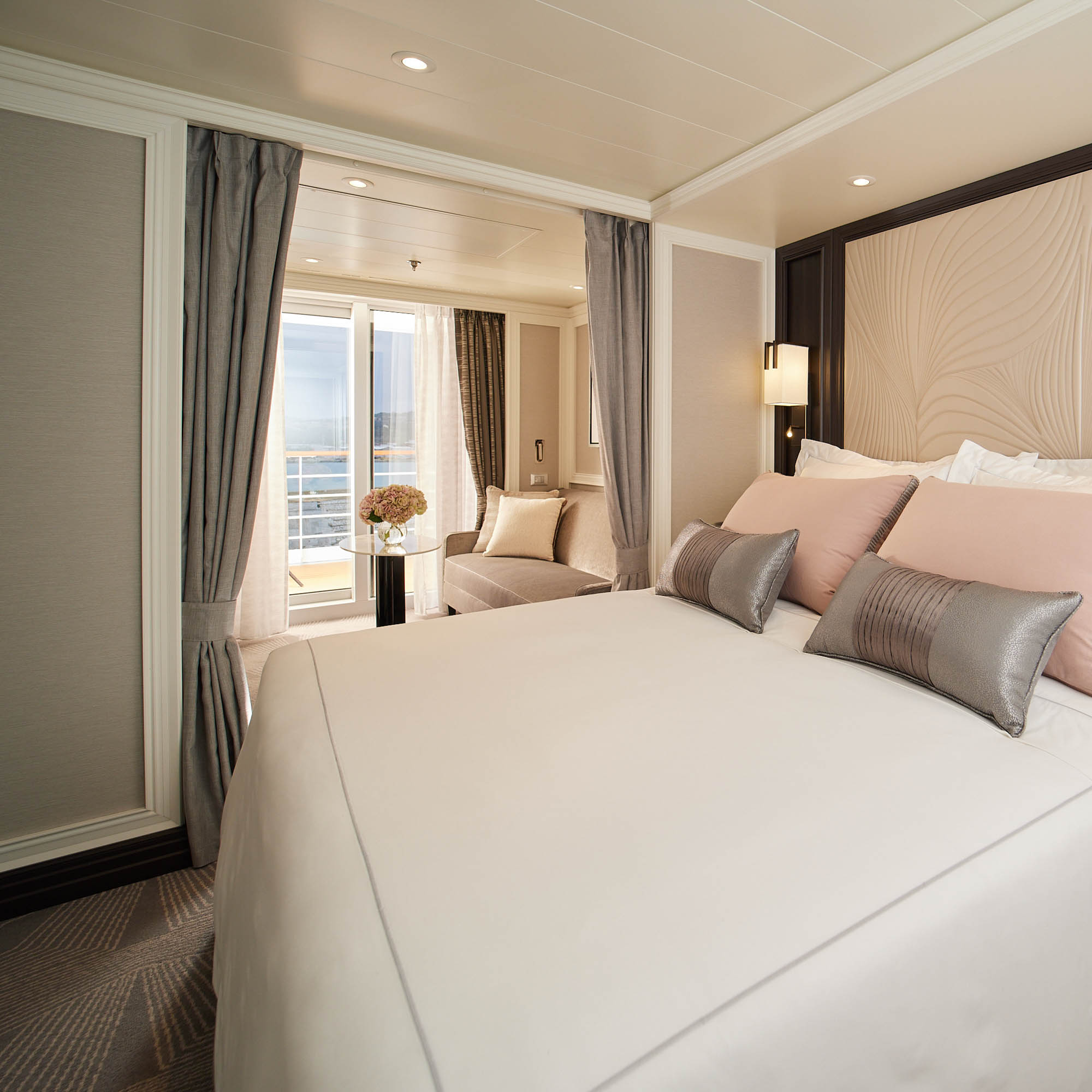 Sich wohlzufühlen fällt in jeder der zehn Suiten-Kategorien herrlich leicht dank der angenehmen Mindestgröße von 28 Quadratmetern und des exzellenten Interieurs: helle Farben, erlesene Materialien, erstklassige Kunstwerke. Und auch im Badezimmer hört der Luxus nicht auf. Denn dort zählen Marmor-Dekor und Produkte hochwertiger Beautymarken - je nach Suiten-Kategorie von L'Occitane oder Guerlain - ebenfalls zum All-inclusive-Konzept an Bord. Toll: Das Befüllen der Mini-Bar mit Getränken nach Wahl ist genauso im Reisepreis inkludiert wie In-Room-Dining und ein täglicher Wäscheservice.