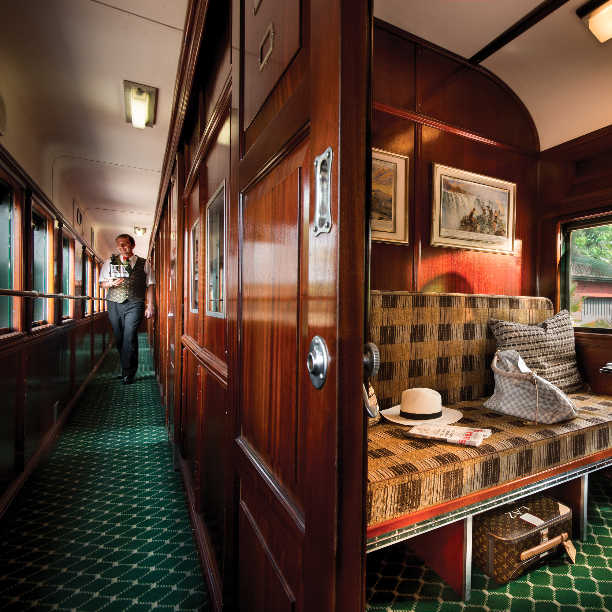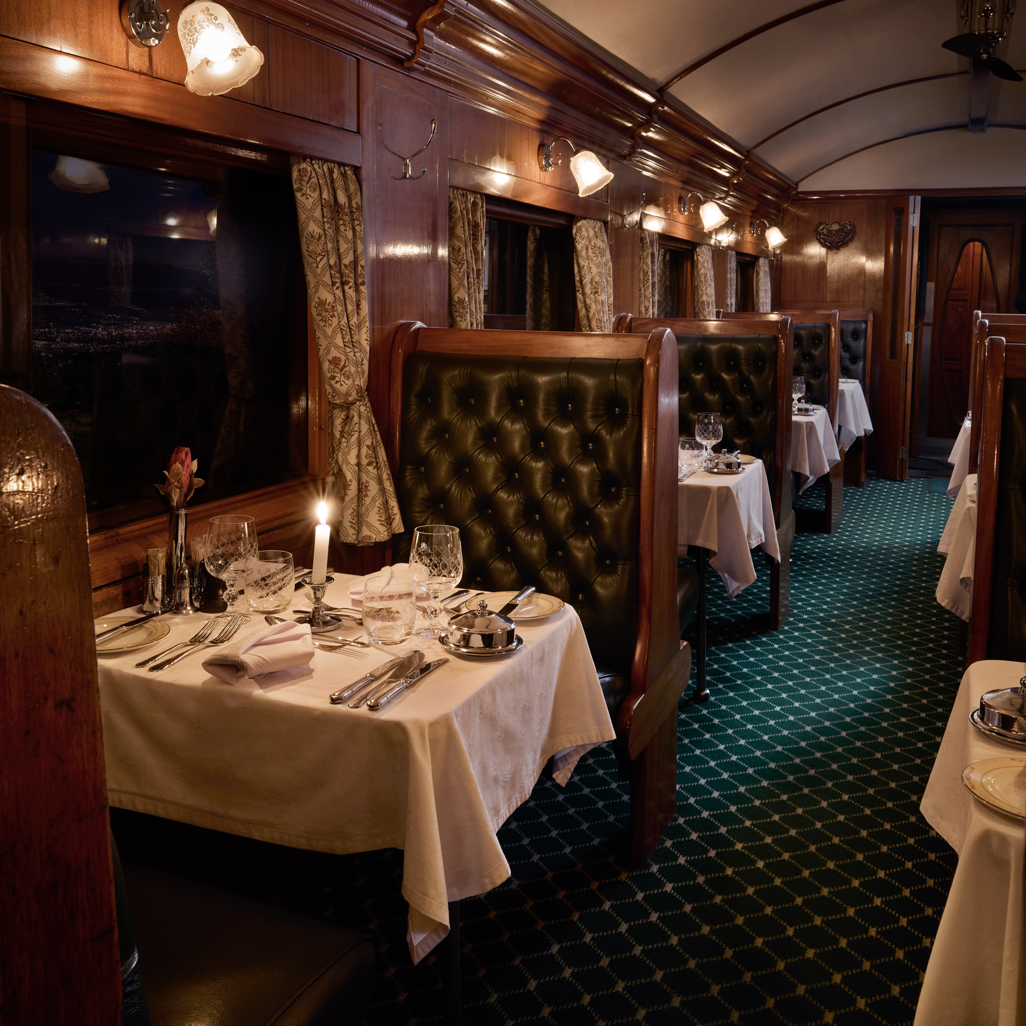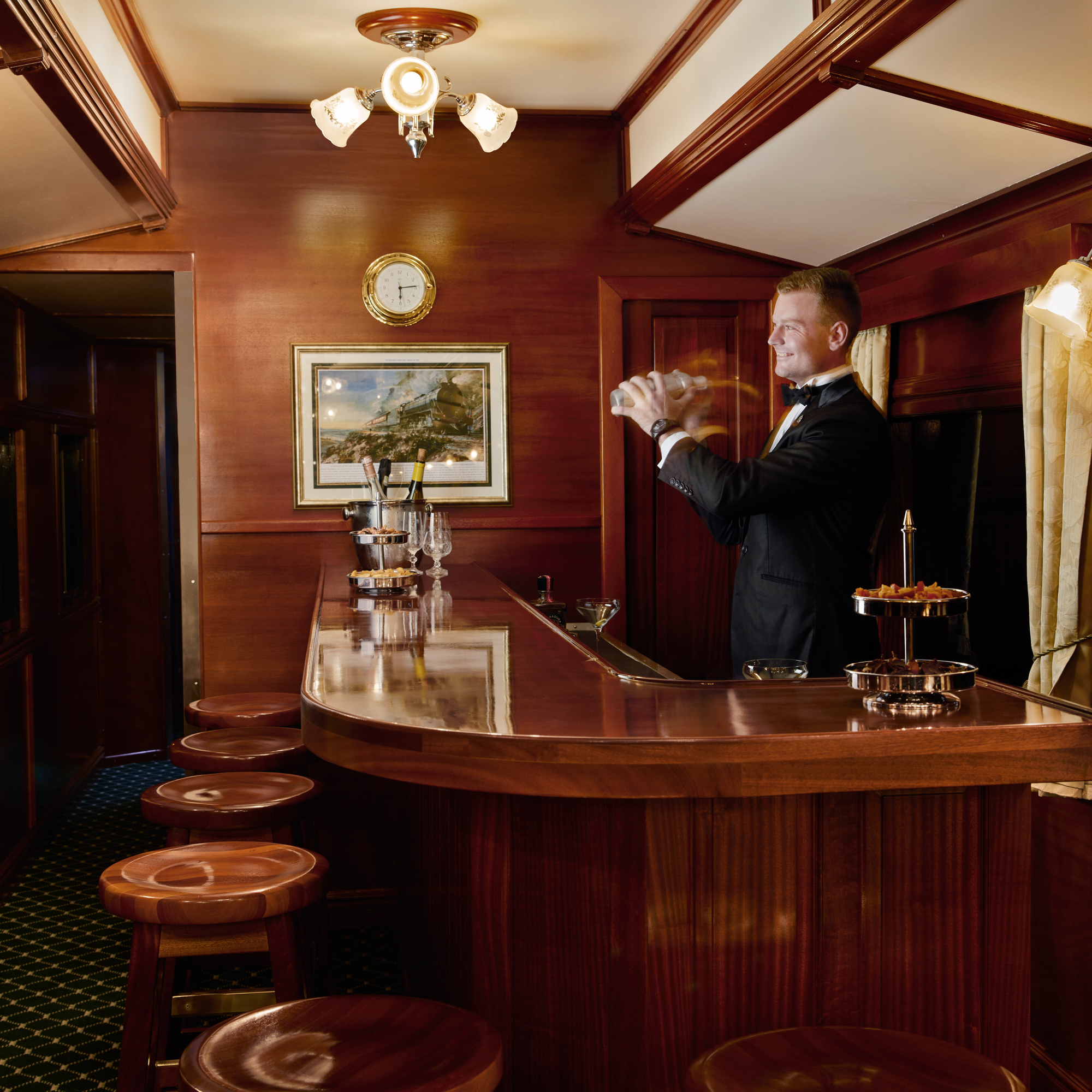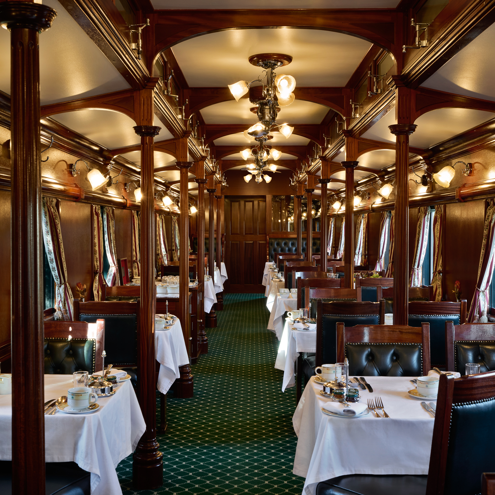 Die liebevoll restaurierten Züge, geprägt von edlen Holzvertäfelungen und klassischer Eleganz, bieten Platz für maximal 72 Gäste in nur 36 exquisit ausgestatteten Suiten. Großzügigkeit und Privatsphäre gehen hier Hand in Hand. In den stilvollen Speisewagen genießen Sie Ihre Mahlzeiten wahlweise in geselliger Runde an Zwei- oder Vierertischen oder ganz für sich.
