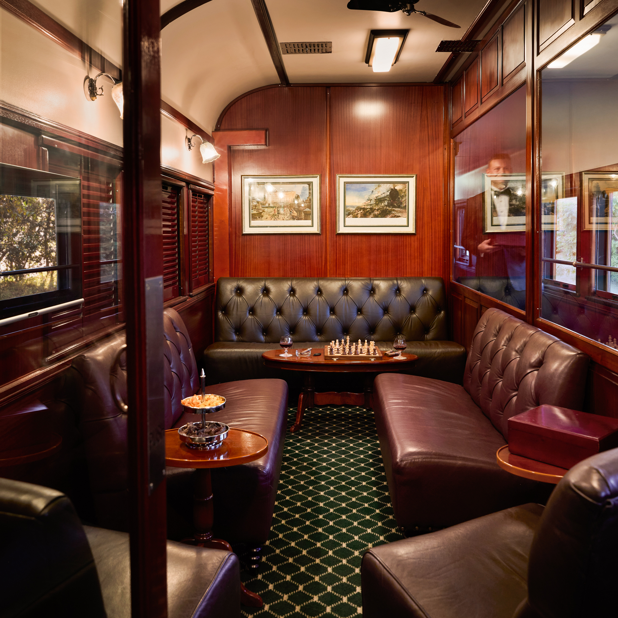 Ein besonderes Highlight ist der Observation Car mit seinem Open-Air-Balkon – der ideale Ort, um die Weite und Schönheit Afrikas unter freiem Himmel zu genießen. Weitläufige Panoramafenster, bequemen Sofa und intime Nischen laden dazu ein, die vorbeiziehende Landschaft in aller Ruhe auf sich wirken zu lassen.