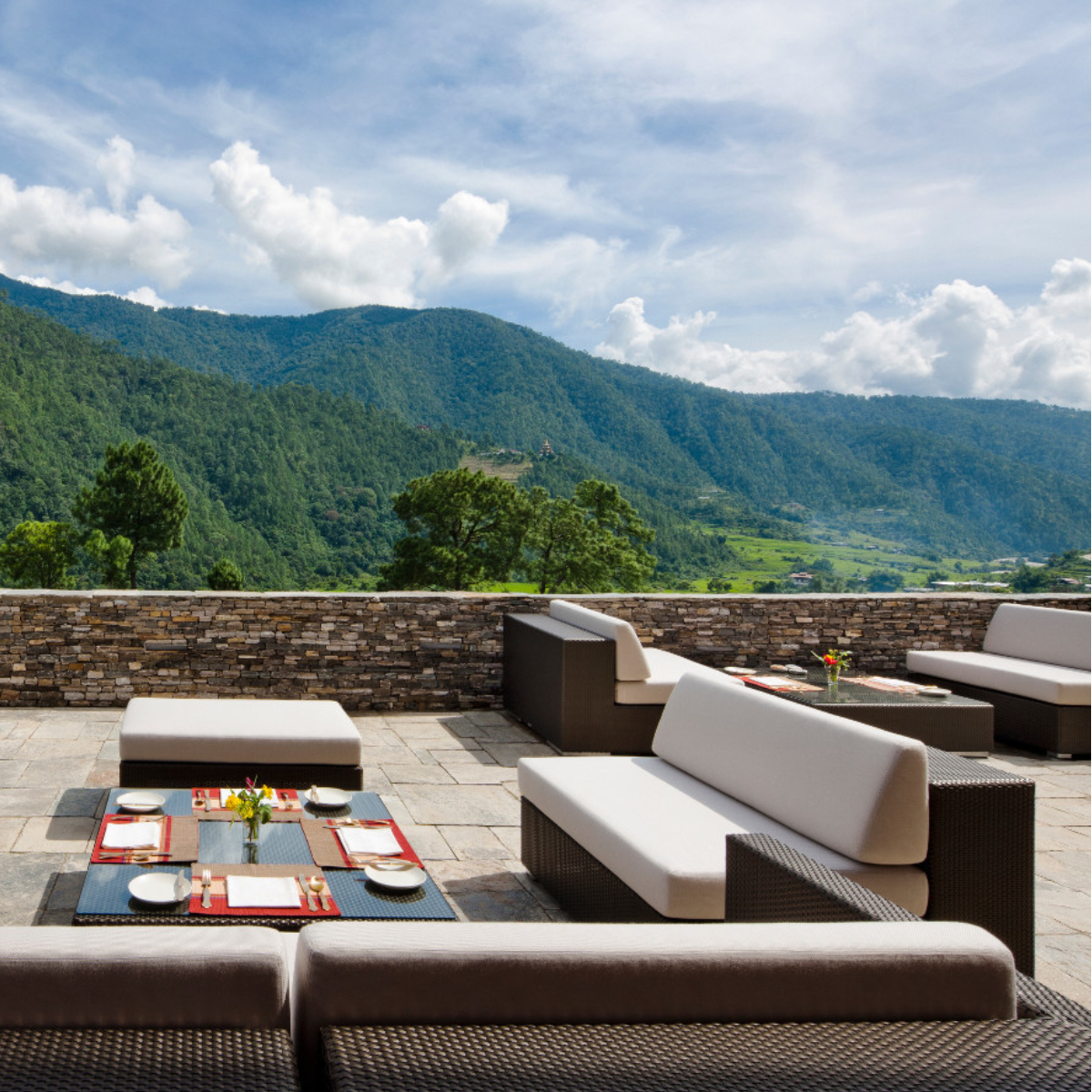 Ein Refugium der Stille an der Bergkette zum Himalaya und mit Blick auf den Mo Chu Fluss ist das Como Uma Punakha. Neun Zimmer direkt am Berg und zwei freistehende Villen liegen in der ruhigen Atmosphäre der alpinen Landschaft. Jedes Zimmer fügt sich nahtlos in die malerische Umgebung ein und bietet einen weiten Blick auf das Tal und den Fluss, der sich durch Reisfelder und Obstgärten schlängelt. Oder man genießt den Panoramablick zusammen mit dem Badeglück einer Hot-Stone-Bath-Wellness-Auszeit.
