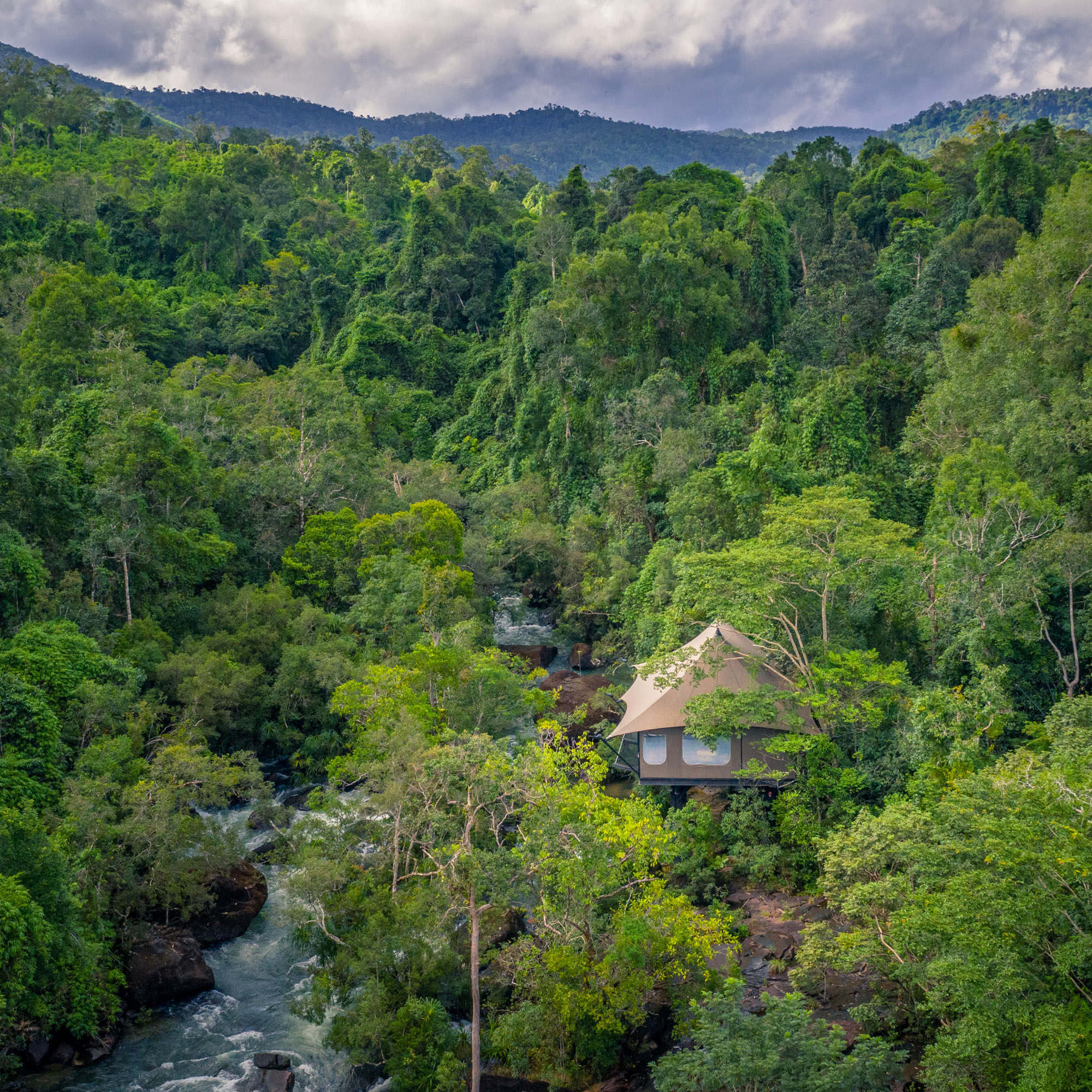 Inmitten vom tropischen Regenwald, umgeben von den drei ältesten Nationalparks Kambodschas, wollte der bekannte Hoteldesigner Bill Bensley helfen, der Umweltzerstörung und Wilderei Einhalt zu gebieten. Und das tut er bis heute. Nur hat er dort ein kleines Glamping-Resort erschaffen. Mit 15 Luxus-Zelten direkt an einem Fluss inmitten des üppigen Grüns. Bei Patrouliengängen mit den Rangern hilft man auf spannende Weise beim Naturschutz.