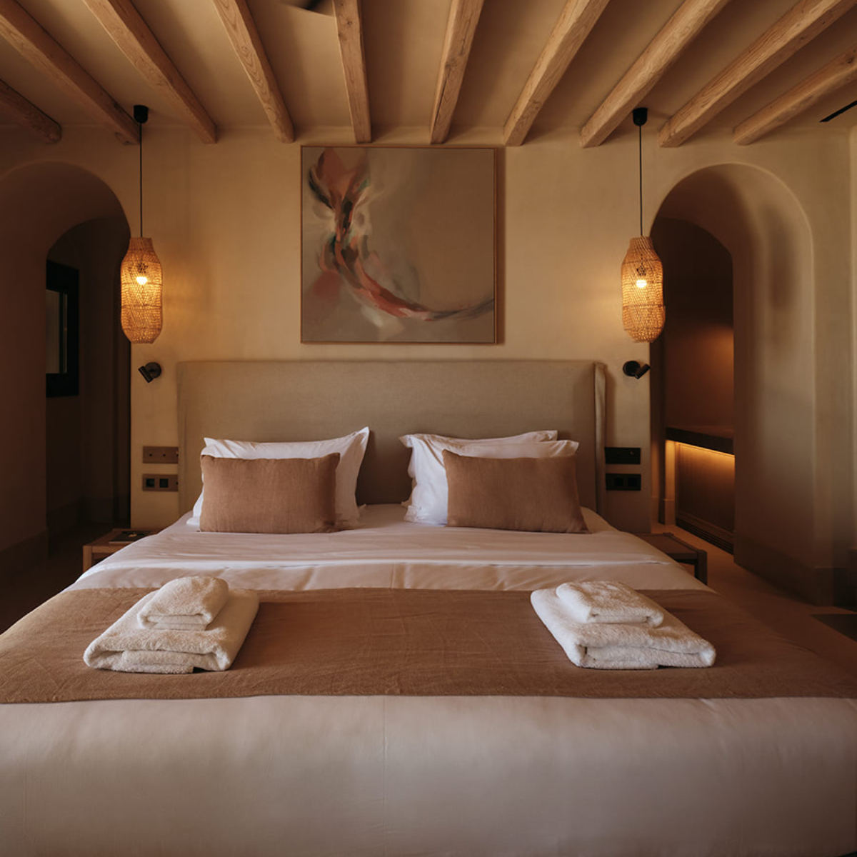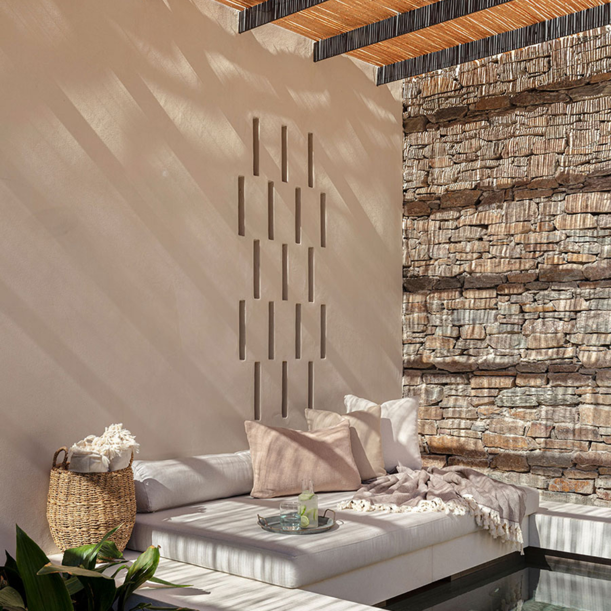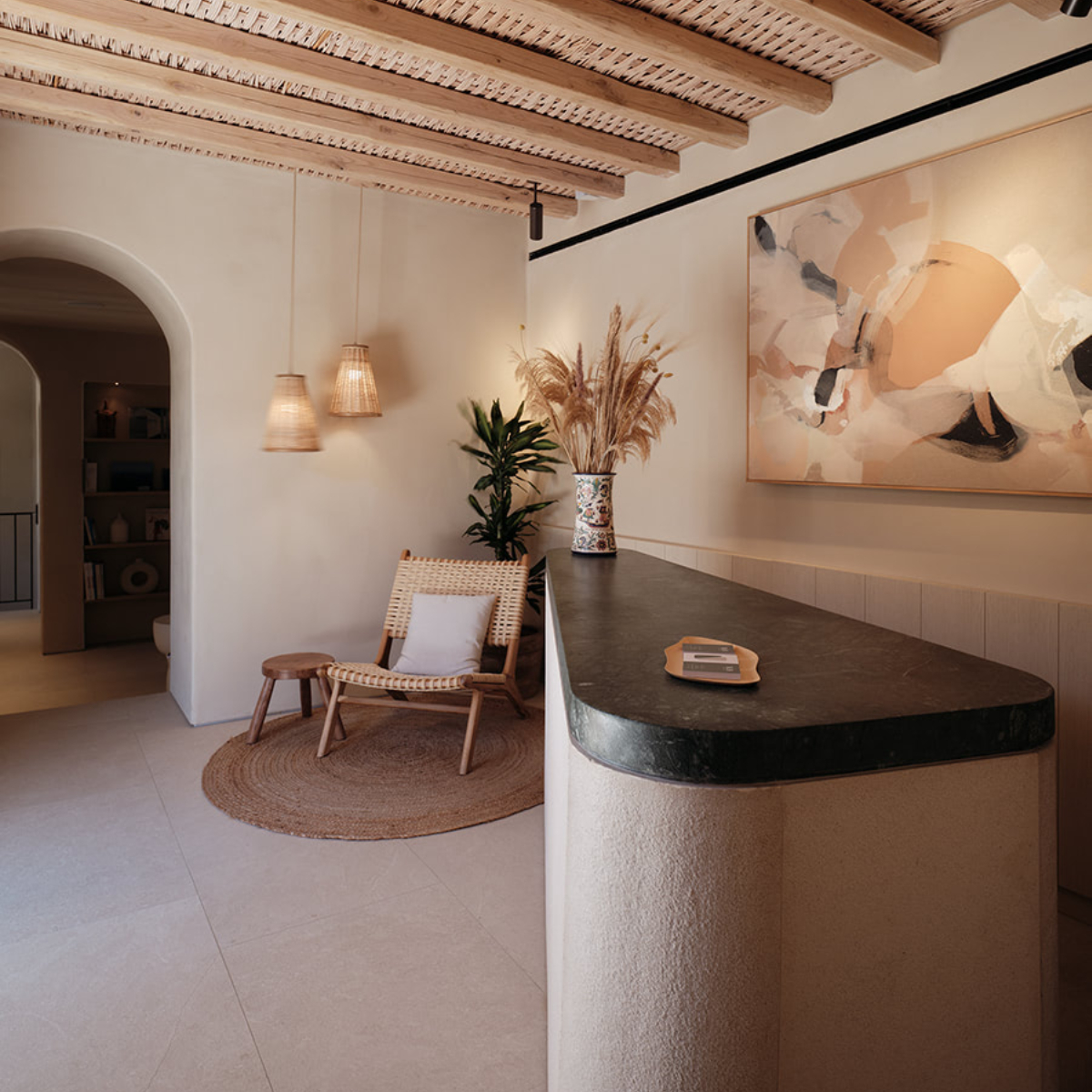 Sifnos ist einst durch Gold- und Silbervorkommen zu Reichtum gelangt. Dies ist längst Geschichte. Seit Jahrhunderten aber wird das Töpferhandwerk – die Insel hat reichhaltige Lehmböden – hochgehalten. Das sich sanft in die Landschaft einfügende 5-Sterne-Hideaway NÓS Hotel & Villas mit 31 Gästezimmern (33 bis 44 Quadratmeter) wurde aus und mit natürlichen Materialen, Stein, Holz, Kalkputz, erschaffen und ist mit seinen erdigen Texturen ein sehr haptischer Ort. Die hellenRäume, es gibt viele Terrassen und Balkone, öffnen sich zu lauschigen Innenhöfen, Drinnen und Draußen verschmelzen miteinander.