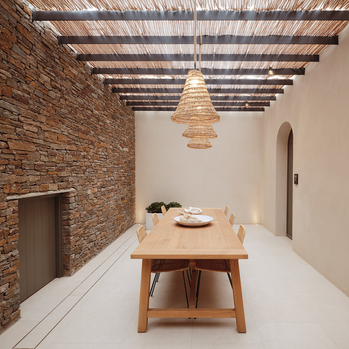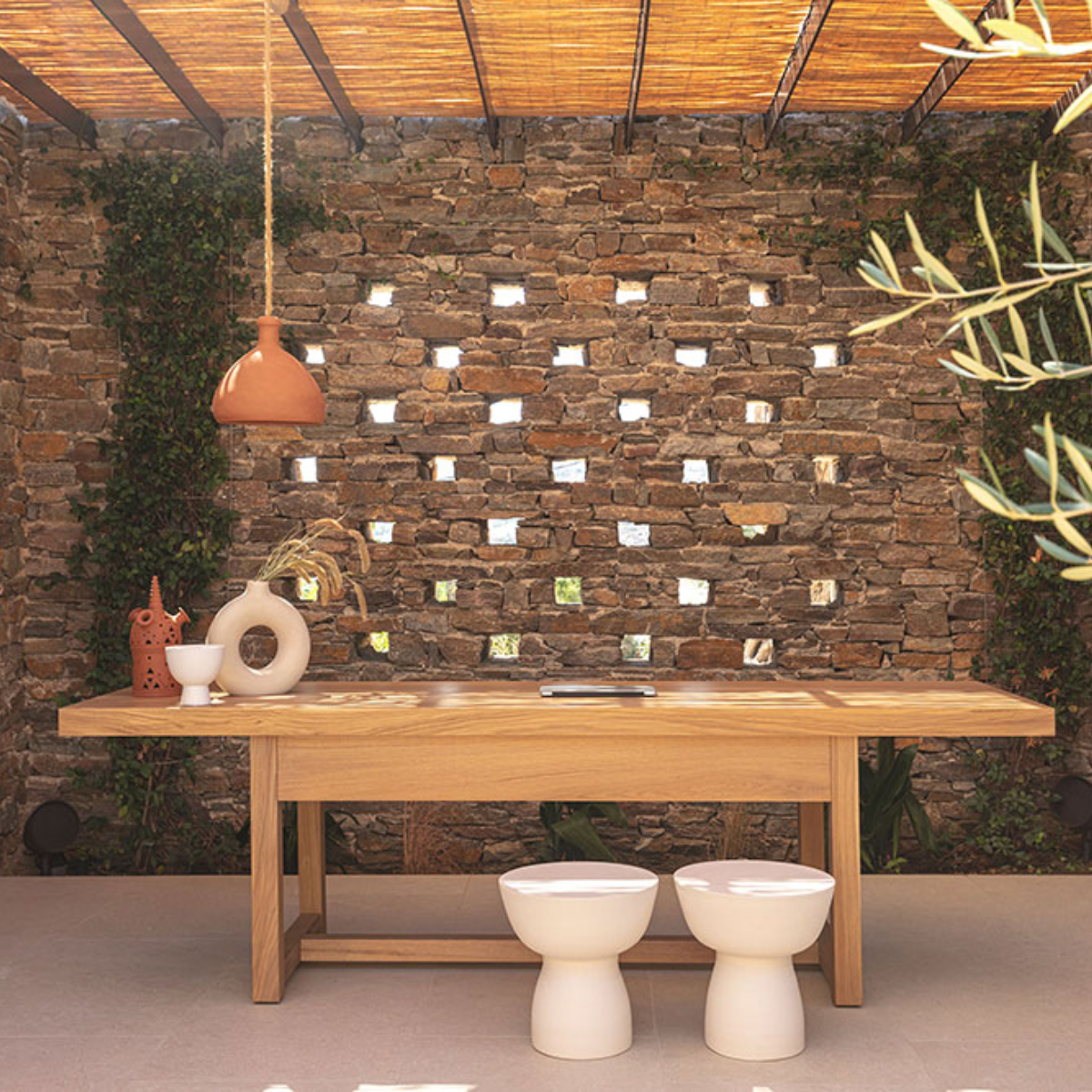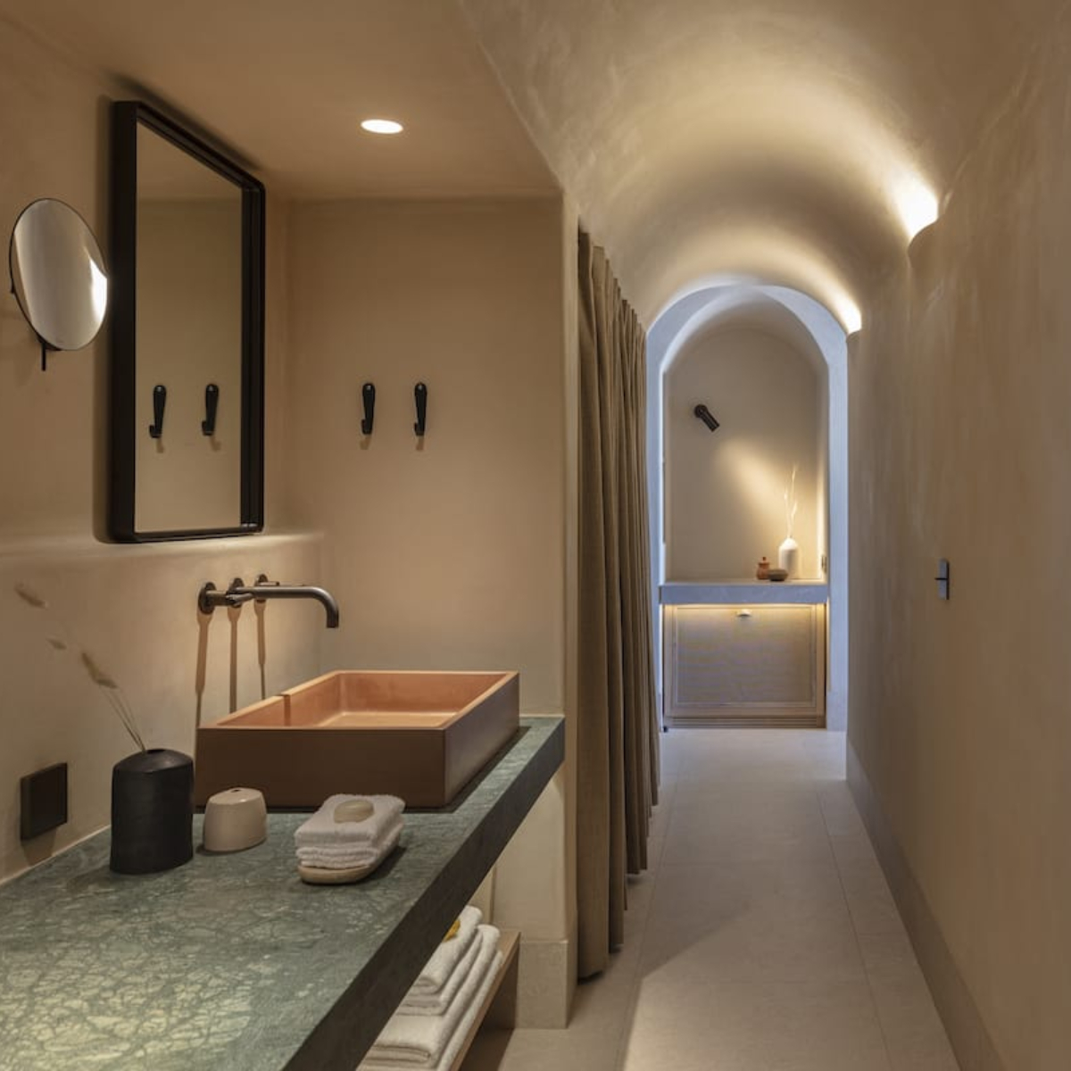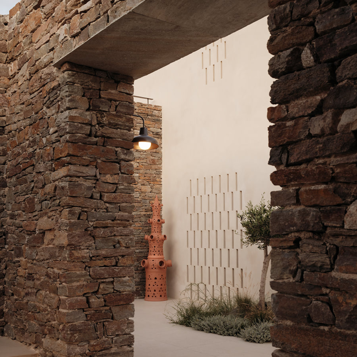 Sifnos ist einst durch Gold- und Silbervorkommen zu Reichtum gelangt. Dies ist längst Geschichte. Seit Jahrhunderten aber wird das Töpferhandwerk – die Insel hat reichhaltige Lehmböden – hochgehalten. Das sich sanft in die Landschaft einfügende 5-Sterne-Hideaway NÓS Hotel & Villas mit 31 Gästezimmern (33 bis 44 Quadratmeter) wurde aus und mit natürlichen Materialen, Stein, Holz, Kalkputz, erschaffen und ist mit seinen erdigen Texturen ein sehr haptischer Ort. Die hellenRäume, es gibt viele Terrassen und Balkone, öffnen sich zu lauschigen Innenhöfen, Drinnen und Draußen verschmelzen miteinander.