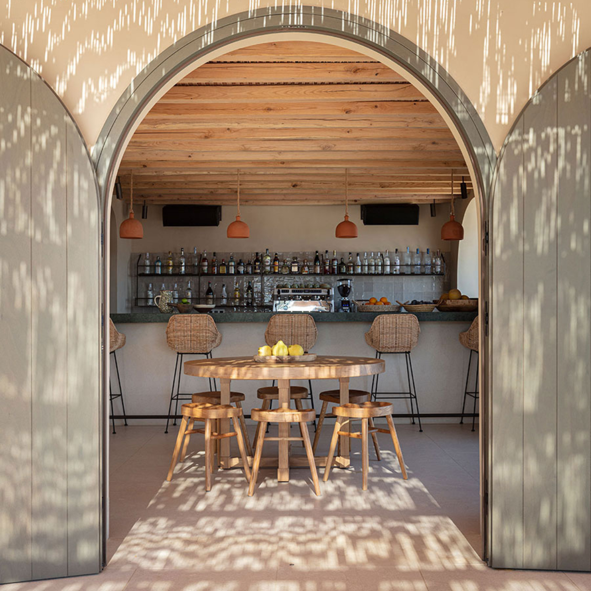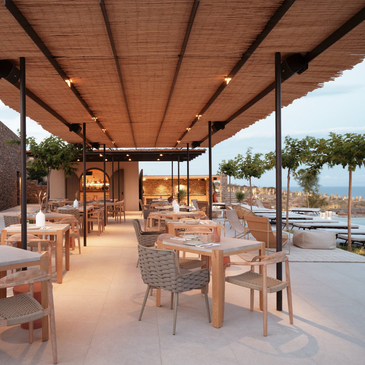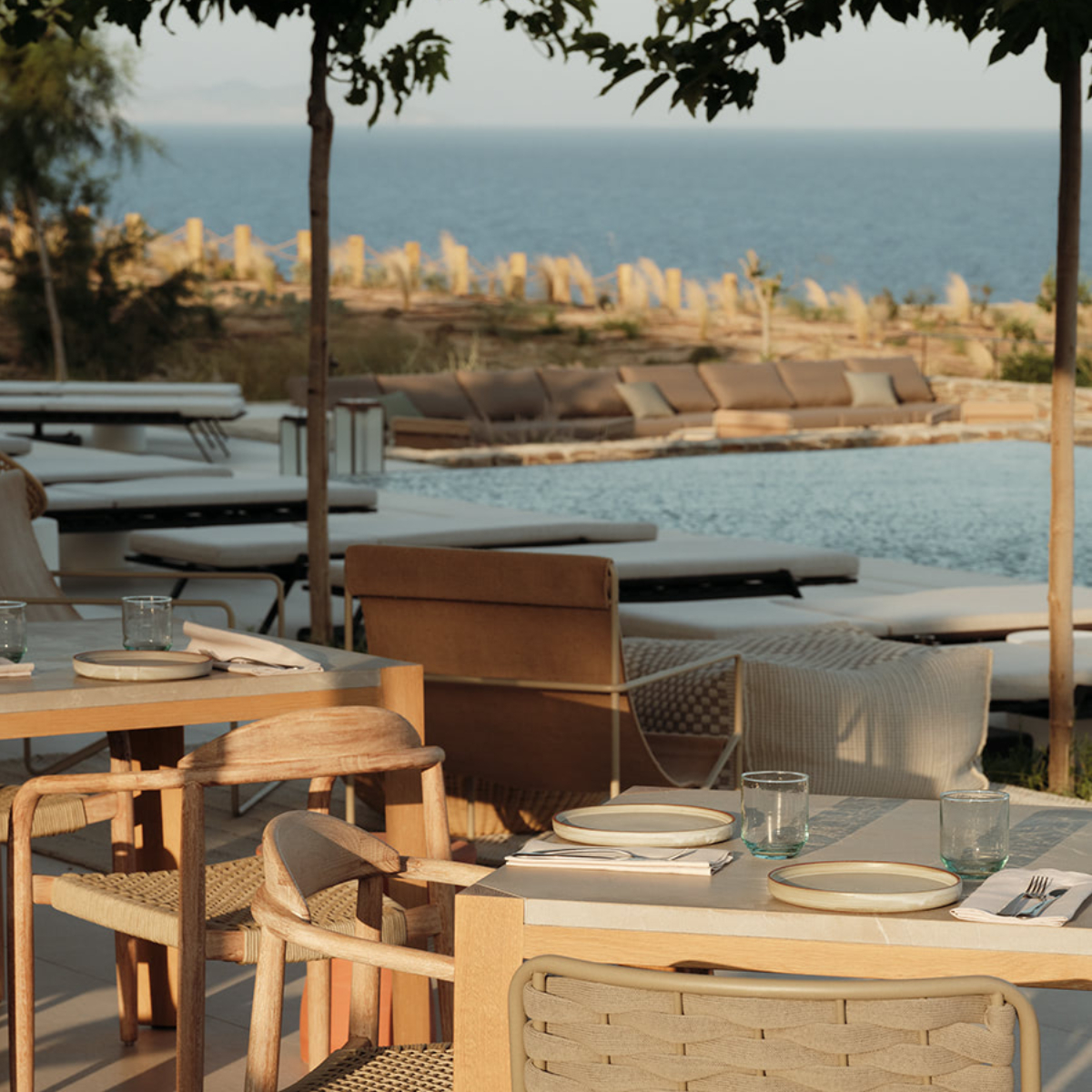 Im Nordosten, nur wenige Kilometer von der mit ihren weißgetünchten, kykladen-pittoresken Häusern durchzogenen Hauptsatdt Apollonia entfernt und ganz in der Nähe des Klosters Chrisopigi, wurde ein Hotel erbaut, das die Essenz der Insel und ihrer gerade mal 2.625 permanenten Einwohner:innen verkörpert: Gastfreundschaft, Authentizität, Ruhe und Anmut, kurz NÓS, eine verkürzte Version des Inselnamens „ Sif-NÓS“.