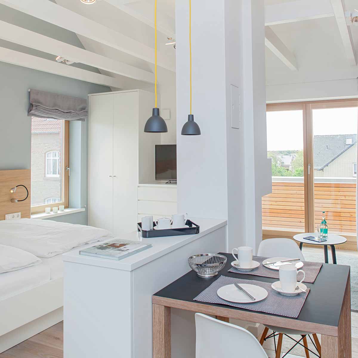 Ganz abgesehen von der fantastischen Lage in einer ruhigen Seitenstraße zur pulsierenden Friedrichsstraße hin und nur 400 Meter vom Strand entfernt, sind die Apartments so stilvoll eingerichtet, dass man sich sofort wohlfühlt. Mit dem historischen Haus Boy, welches 1881 erbaut wurde, bildet das moderne Hintergebäude dabei ein perfektes Zusammenspiel aus Alt und Neu.