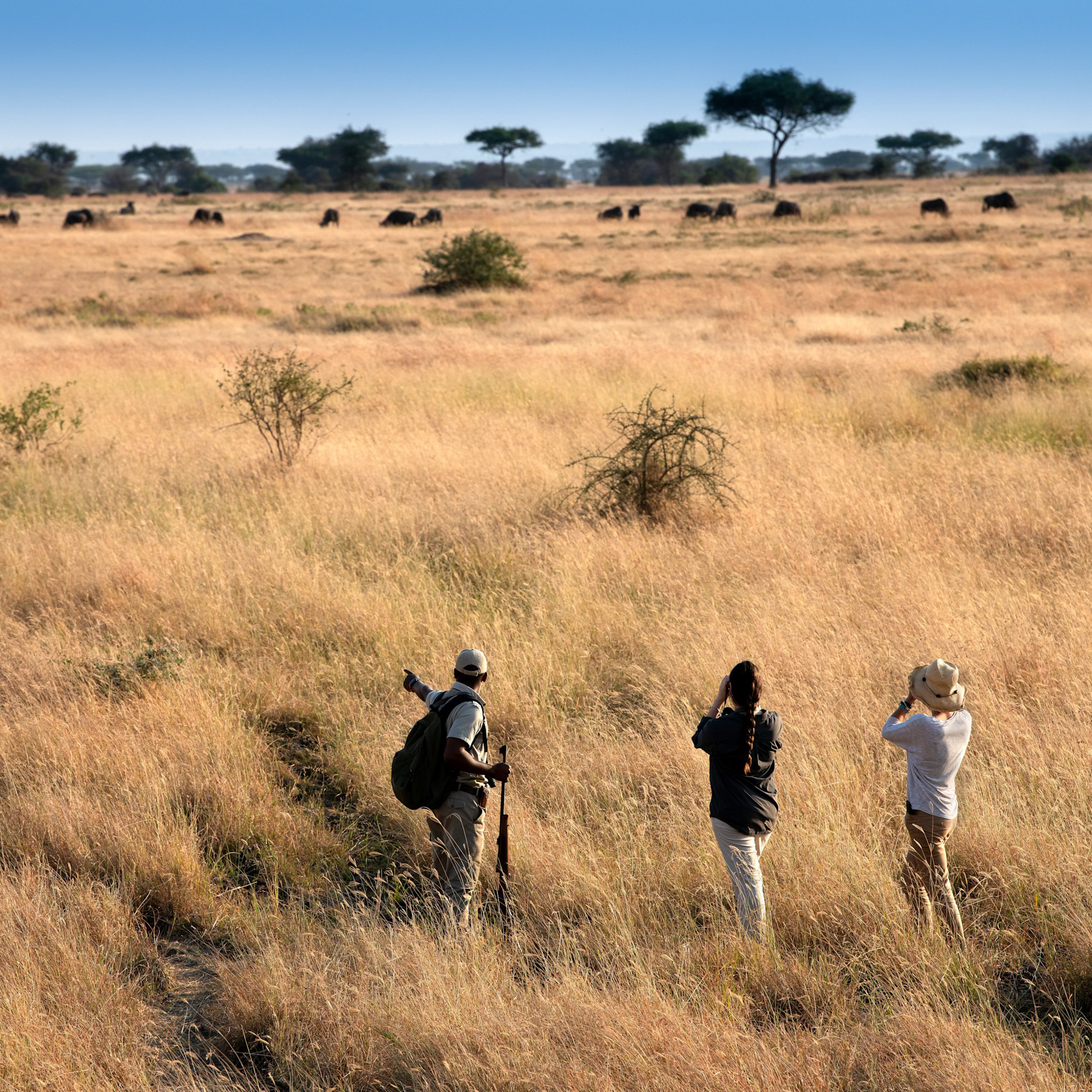 Es geht hoch hinauf, auf einen Baumwipfelpfad. Noch ein Stück höher an den Rand des berühmten Ngorongoro-Kraters, dort oben noch ein Sundower nach einer atemberaubenden Wanderung. Und gen Himmel mit dem Heißluftballon, bei einer Fahrt über die Serengeti – Vogelperspektive also, nachdem wir die Savanne mit ihren über 3,5 Millionen Tieren bereits auf Augenhöhe vom privaten Safari-Jeep aus erlebt haben.