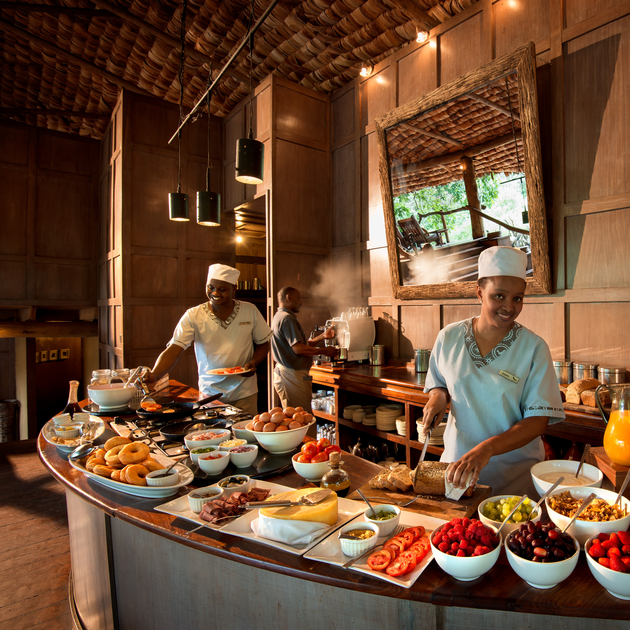 Apropos Genuss. Keine Ella-Fogg-Reise ohne selbigen. Es wird im Boma, sozusagen dem afrikanischen Outdoor-Esszimmer, und mitten im Busch diniert, am Seeufer gefrühstückt und gepicknickt. Wäre da noch ein gewölbter Speisesaal mit großem Kamin, den man am besten mit „Massai trifft Versailles“ beschreiben kann. Der befindet sich übrigens in der einem Lehmdorf nachempfundenen andBeyond Ngorongoro Crater Lodge, wo, unser voller Ernst (und Spaß), auch die aus dem Wasserhahn pichelnden Zebras zuhause sind.