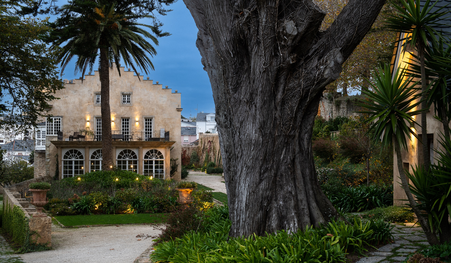 Wie nachhaltig Luxus ist, zeigen etwa die Eichenholzböden. Sie wurden aus einem Abriss recycelt und erfahren nun im Vestige Palacio de Figueras ein zweites Leben. Die elf Zimmer, darunter zwei majestätische Suiten sind im Turm des Palastes sowie den beiden ebenfalls mit Zinnen bekrönten Flügeln untergebracht. Ungewöhnlich für historische Gebäude sind die großen Fenster, die viel Tageslicht hineinlassen und in den schönen, gepflegten Garten blicken lassen.