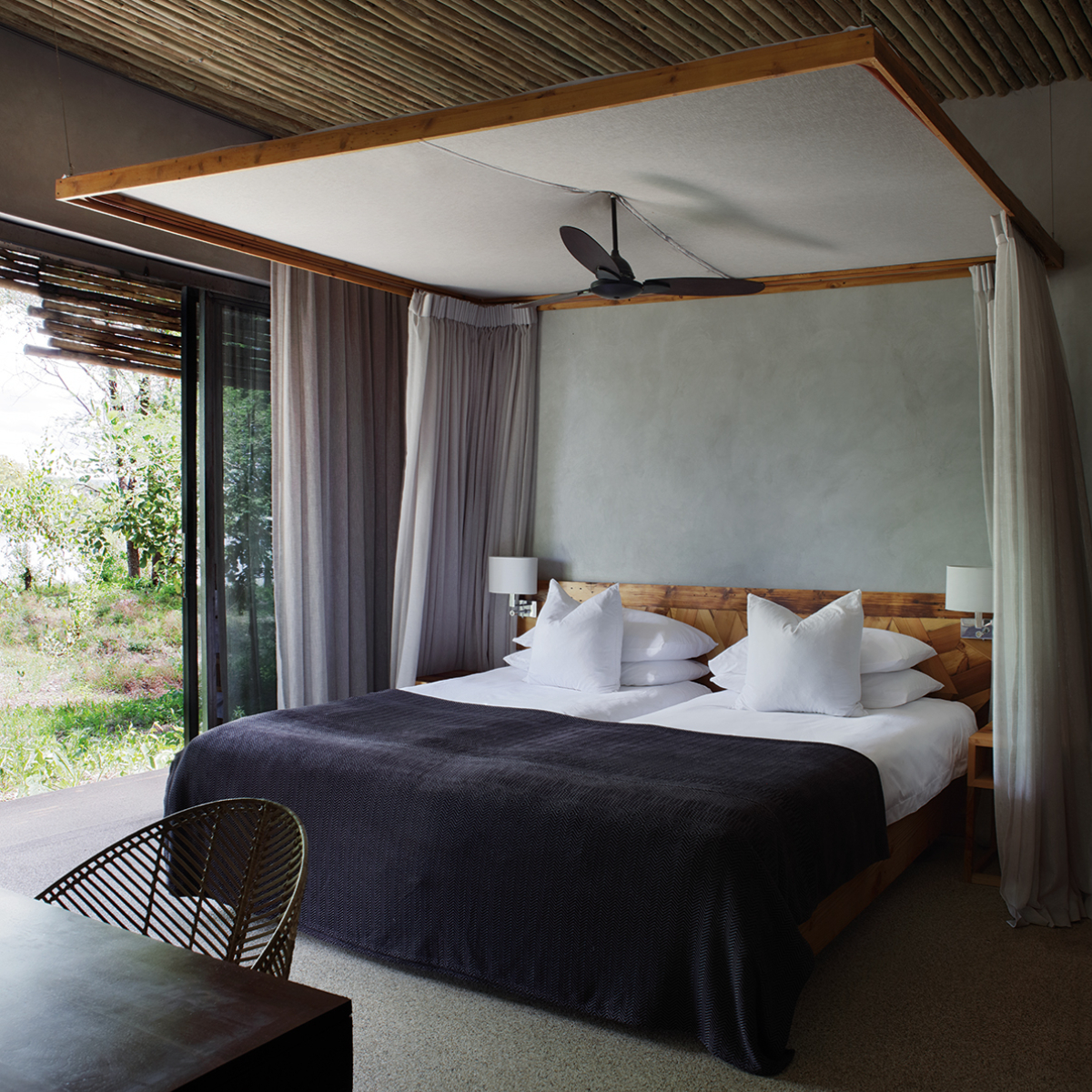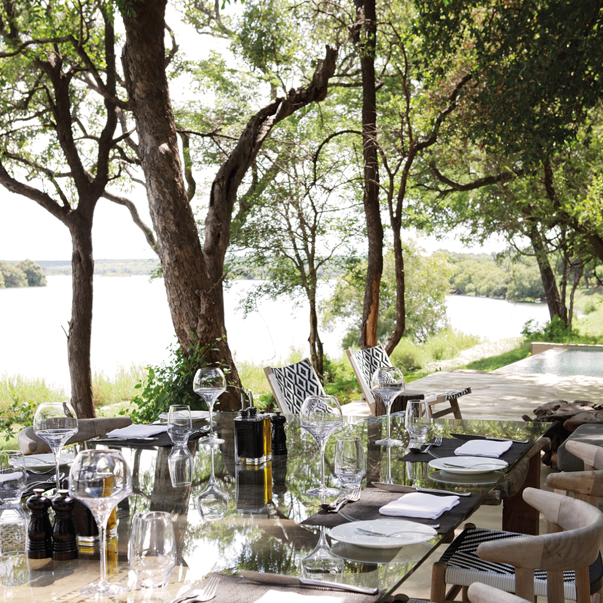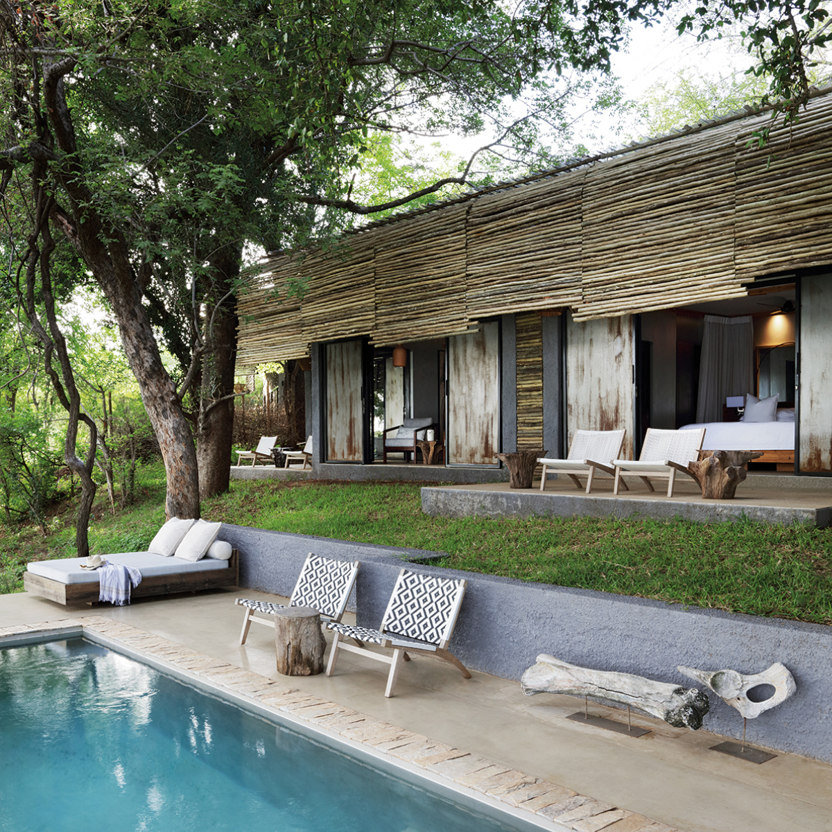 „Leben am Fluss“ ist dann auch ein Motto der Matetsi Lodge. Entspannt am Ufer sitzen und einfach nur aufs Wasser blicken, Kreuzfahrten auf dem Sambesi machen, Kanuausflüge und Angeln, jeder nach seiner Facon. Oder man genießt das Element Wasser in der eigenen der 28 Lodge-Suiten und einer Villa, jede verfügt über ein eigenes Tauchbecken. Um längere Bahnen zu ziehen, steht ein 20-Meter-Pool zur Verfügung.