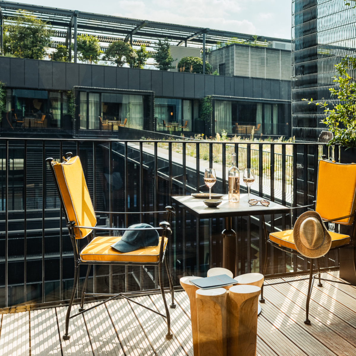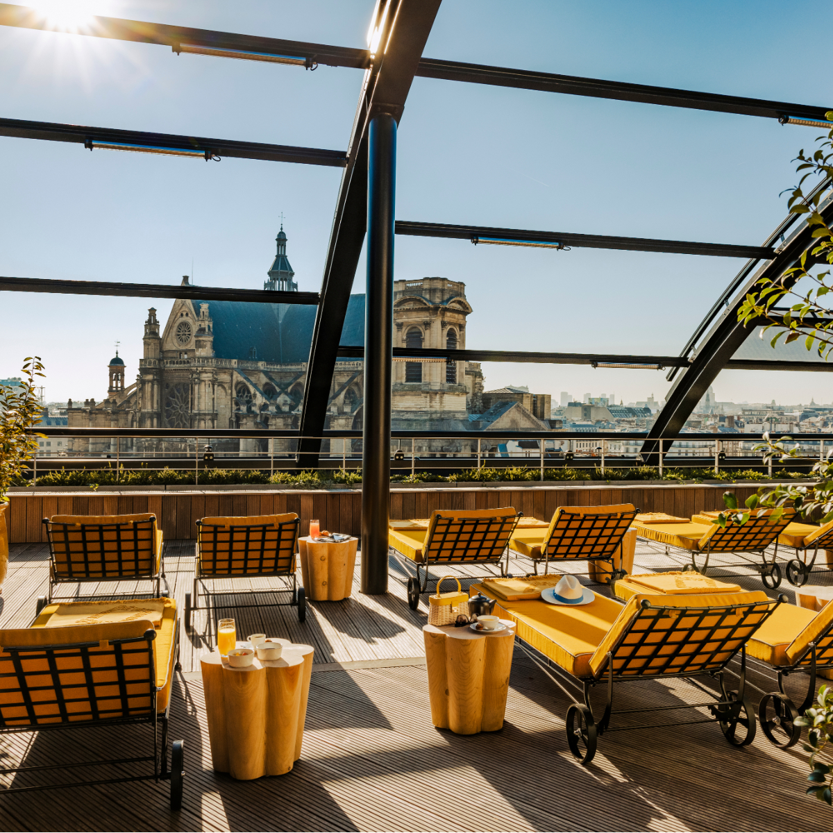 Madame muss sich nicht auf eine Dachterrasse träumen. Taïeb hat die vierte Etage des Fünf-Sterne-Luxushotels in einen eintausend Quadratmeter großen Dachgarten mit 360-Grad-Blick verwandelt: der größte seiner Art in Paris. Im Frühjahr wird dort eine Cocktailbar eröffnen, die, davon darf man jetzt schon ausgehen, zum angesagten Treffpunkt von Tout-Paris werden wird.