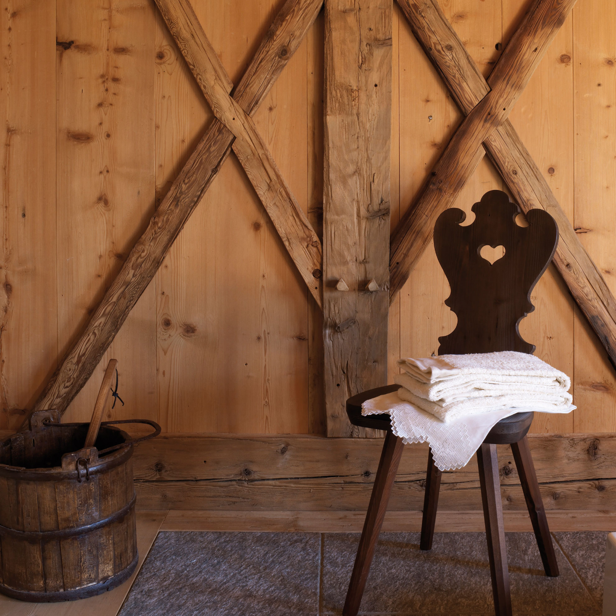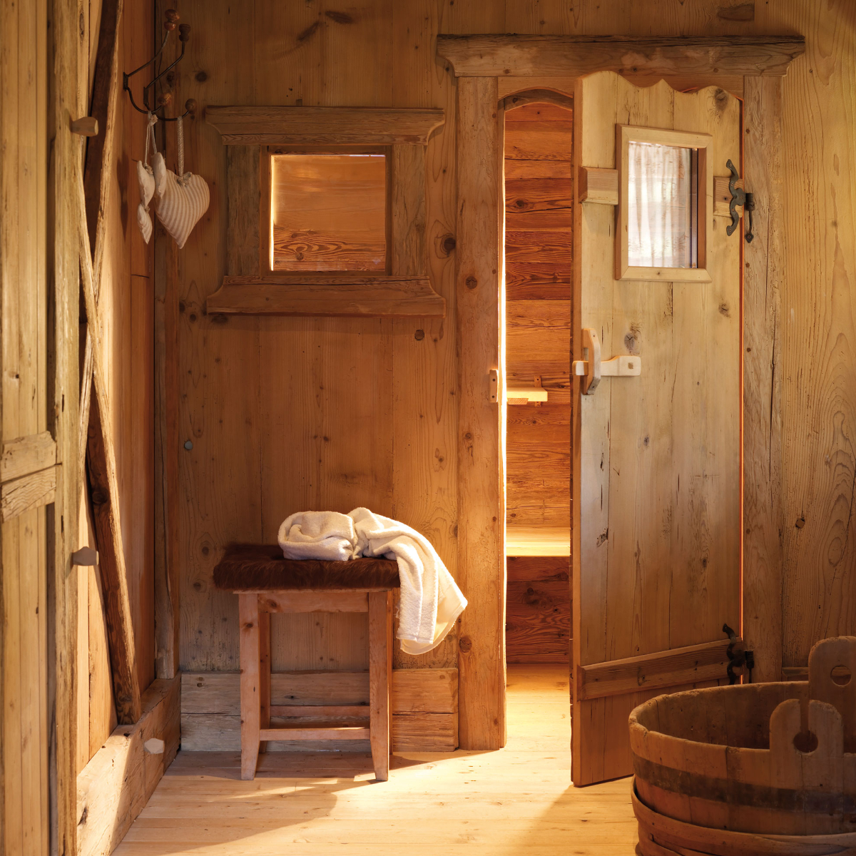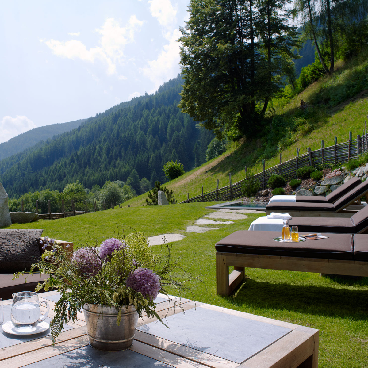 Georgia und Stefano bieten Wohlfühlluxus. Der beginnt mit einem Aperitif bei der Ankunft – so wunderbar typisch für Italien und Südtirol. Eine klare Köstlichkeit der Region, kostenloses Quellwasser, steht immer bereit, in den Erholungsbereichen zudem Säfte. Nachmittags wird zum Tee geladen. Der Tiroler Ofen in der nach Tannenholz duftenden Stube und der Kamin werden täglich beheizt.