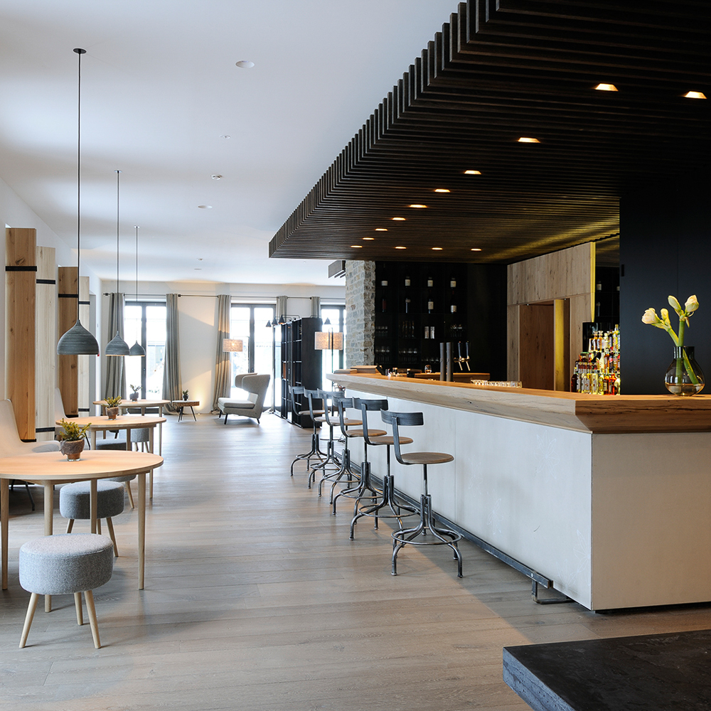 Schon beim äußeren Anblick, spätestens jedoch beim Betreten der Lobby beginnt mein Herz, ob der absoluten Harmonie des Interieurs, höher zu schlagen. Wohin das Auge auch blickt, es kann sich ausruhen. Nichts stört. Nichts ist zu viel. Eiche und Walnussholz. Naturstein. Feuer geschmiedetes Eisen. Warme Farbtöne. Edles Leinen. Alles scheint zu sagen: "Ich bin da, aber lass dich nicht stören."