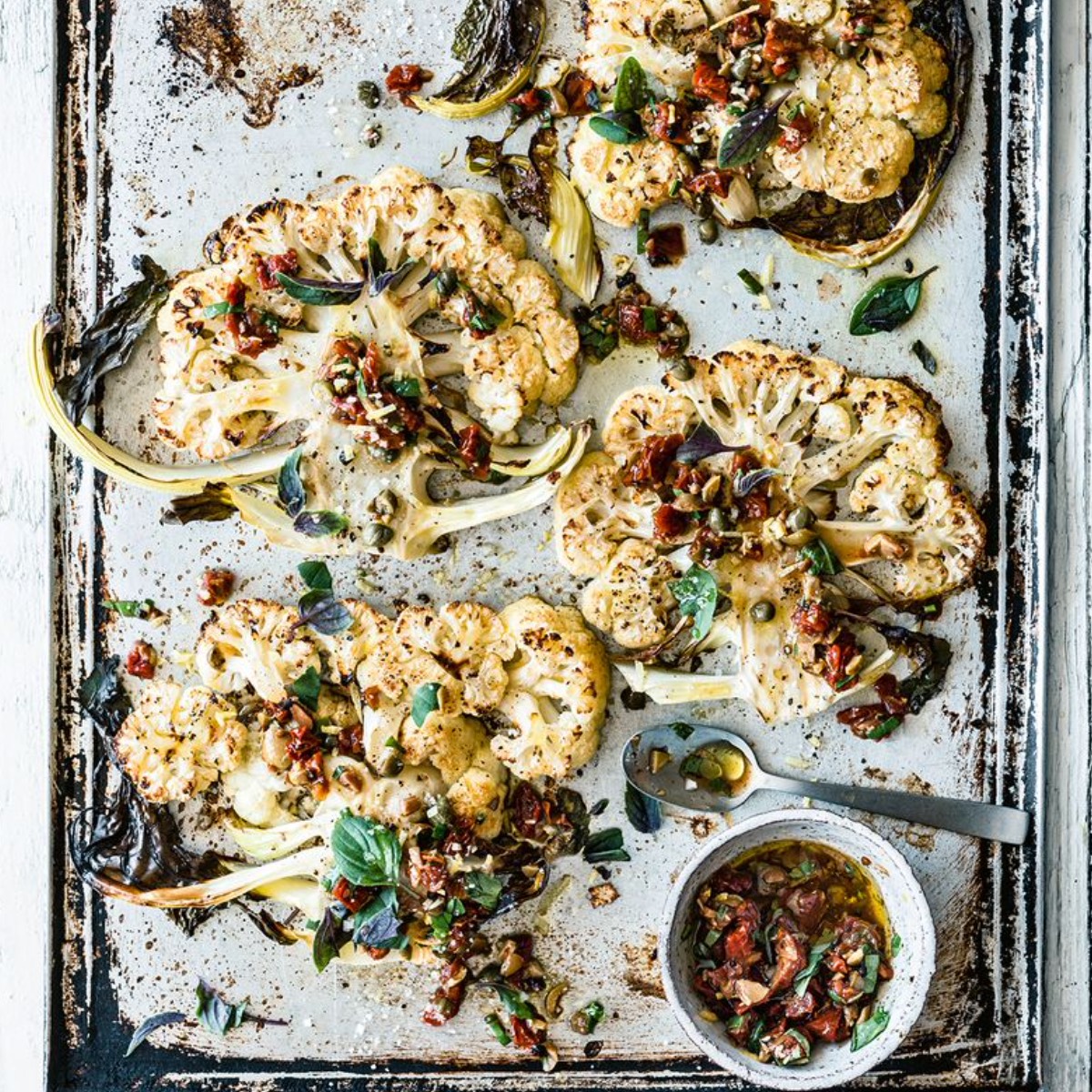 Mit ihren genialen Blumenkohlsteaks zaubert Anne-Katrin Weber ein köstliches, veganes Gericht, das leicht gelingt und wirklich allen schmeckt. Die dicken Blumenkohlscheiben werden so lange im Ofen gegart, bis sie knusprig braun sind und schöne Röstaromen haben. Mit einer grandiosen Kapernsalsa wird das Ganze abgerundet. Wer möchte, kann frisches Brot oder Püree dazu reichen.