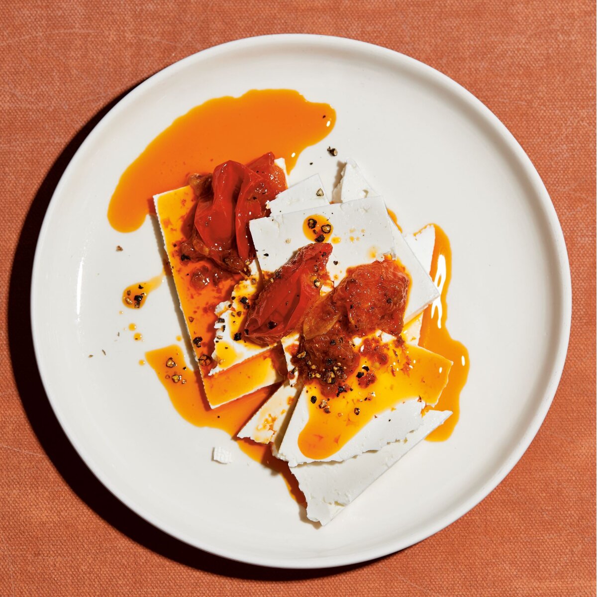 Heute auf dem Menü: Scharfes Essen. In vielen Küchen südlicher gelegener Länder wird schärfer gekocht als bei uns – denken Sie zum Beispiel an thailändische oder mexikanische Gerichte. Das hat seinen Grund: scharfes Essen lässt uns schwitzen und Schwitzen wiederum kühlt den Körper herunter. Abkühlen durch scharfes Essen, das funktioniert also tatsächlich. Glauben Sie nicht? Probieren Sie einfach einmal selbst aus, zum Beispiel mit diesem wunderbar scharfen Feta in Tomatenmarinade aus dem Kochbuch „Nothing Fancy“.